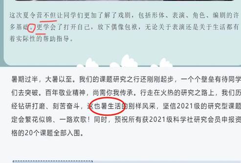 7月10日至7月24日,12位同学在语文组曹璟老师的带领下,有计划地进行线上“啄木”行动。活动中,队员们按照时间维度认真查找了近一年学校通讯稿中出现的各种用字和标点符号不规范现象,并把不规范用字和标点符号拍成照片,整理成文档。同学们通过耐心地检索,查阅字典,向老师请教等方式进行纠错,以达到积极改正的目的。在开学后,同学们将根据汇总后的信息按照黄浦区语委发布的通知要求进行整改。