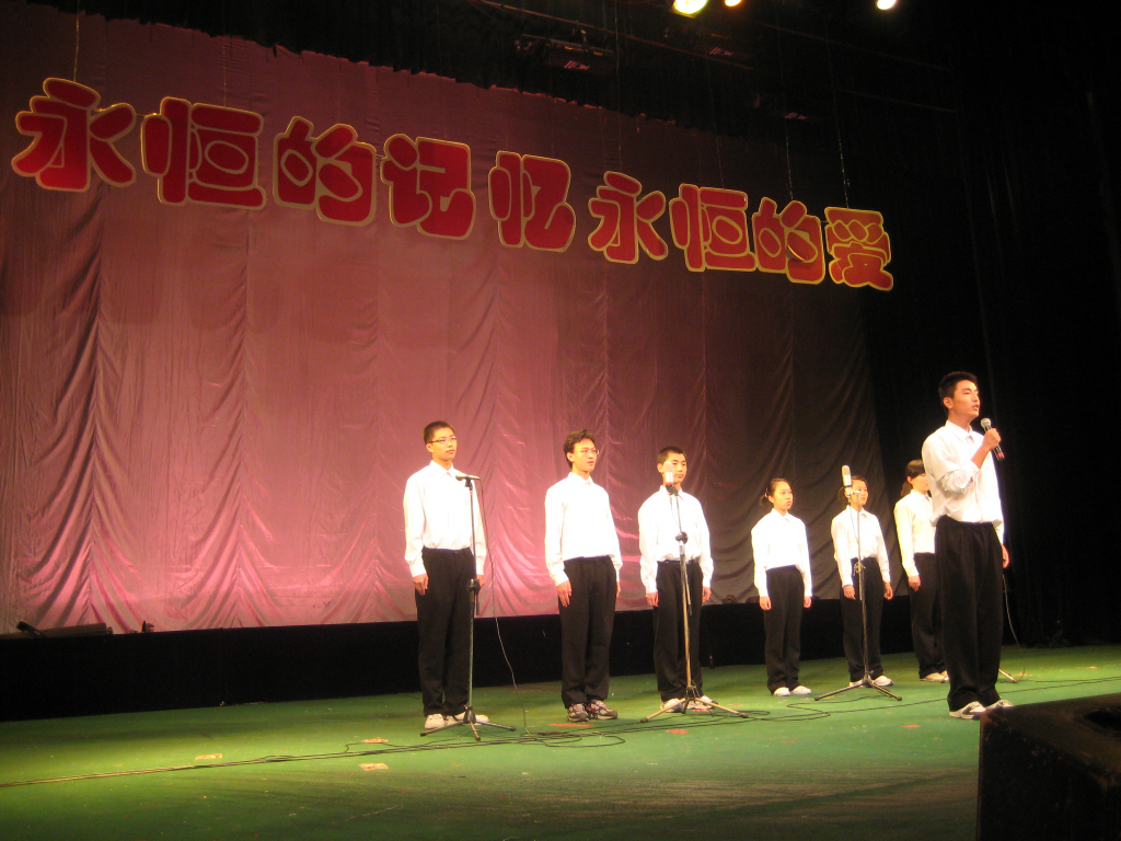 在汶川地震的百日祭到来之际,作为首批被授予国家级语言文字规范化示范校称号的学校之一,我们所有敬业人要用诗歌诵读的方式传递我们真挚的感情、表达对灾区人民的祝福是我们的心愿,于是在暑假期间黄浦区语言文字工作委员会、黄浦区教育局与我校联合组织开展了以“永恒的记忆 永恒的爱”为主题的纪念汶川地震诗歌朗诵表演。这一活动不仅仅是为了丰富学生的假期生活,更是为了让学生感受生命的美好、感悟人性的光芒、发扬抗震救灾的精神,同时为学校260周年校庆献礼。