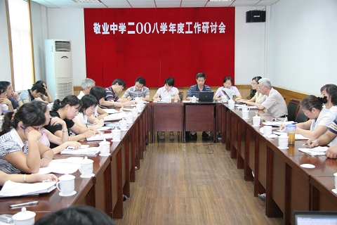 8月18、19日,敬业中学召开了2008年度学校工作研讨会,在郑大中校长主持下,包括教研组长、年级组长以上的各部门负责人共三十六位老师参与了此次研讨活动,我校特级教师黄政民、朱再宇、钱君端等老校长也应邀出席。