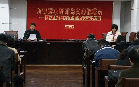 随着本市中小学“二期课改”的全面推广,各学科的课堂教学在先进课程理念的指引下发生变化,我校老师在实施新课程的过程中,积极探索,课堂教学注重发挥学科的育人功能,注重培养学生的创新精神和实践能力,注意丰富学生学习的经历,课改的要求正在逐步得到体现。为了进一步提高课堂教学的有效性,向时间要效率,切实减轻学生的学习负担,我校于2008年12月12号举行“好课标准研讨与实施推进会——暨课程建设工作室成立大会”,在全校展开好课标准大讨论。