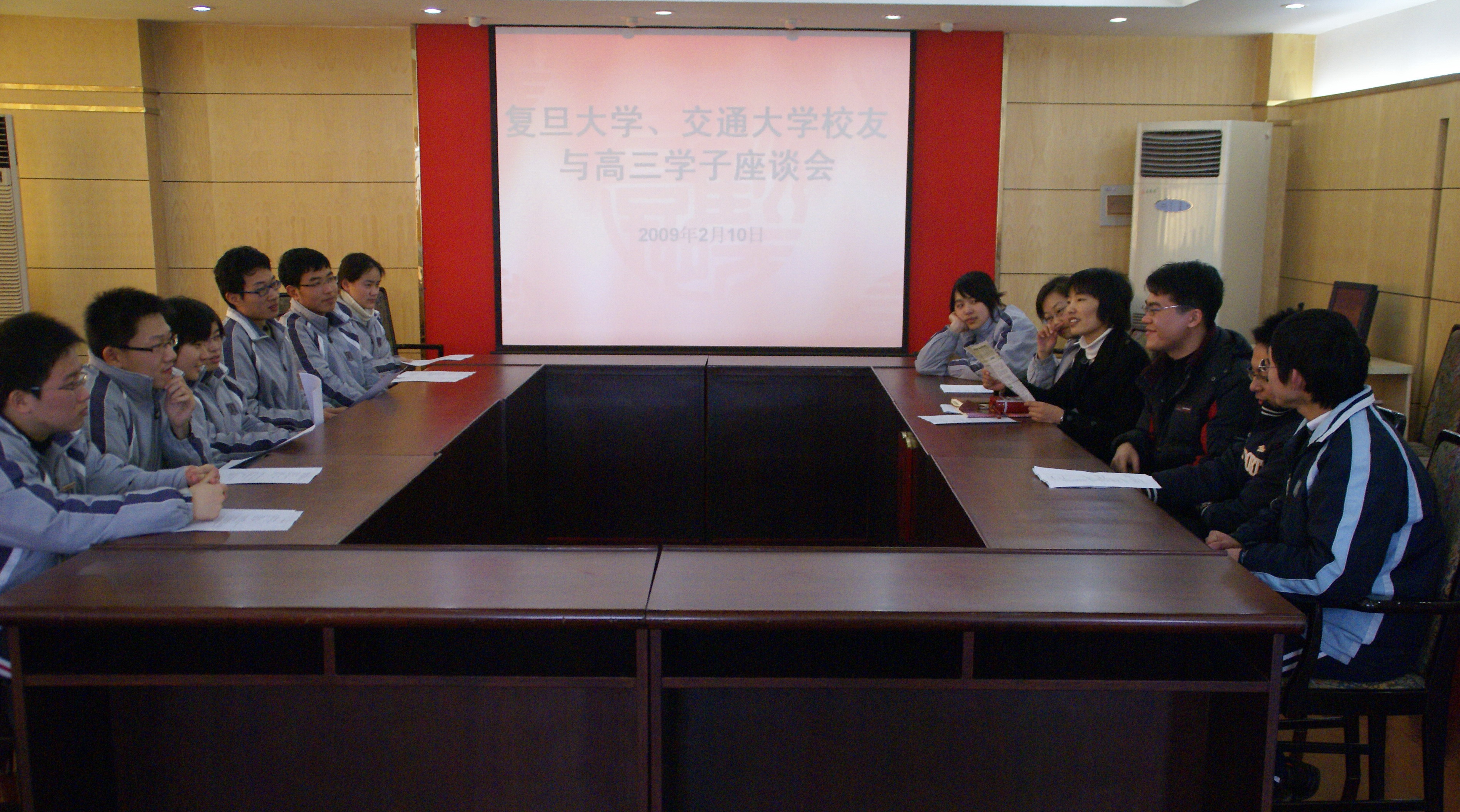 2009年2月10日,新学期的第二天,敬业中学迎来了三位特别的小嘉宾——去年通过自主招生顺利被复旦和交大录取的敬业校友们,他们应邀专程来为获得面试资格、即将参加名校自主考试的高三学弟学妹们传经送宝。三位学长向高三的同学们介绍面试流程,分享经验教训,鼓励大家要自信放松的迎接面试。面对面的沟通交流,缓解了高三同学们紧张的情绪,解开了他们心中许多的疑惑,使他们受益良多。与会的同学们表示十分感谢学校和学长们给予的大力支持和帮助,一定会继续努力学习,以优异的成绩报答学校和老师对他们的教育和培养。