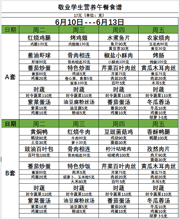 上海市敬业中学第17周学生午餐公示-九游会国际