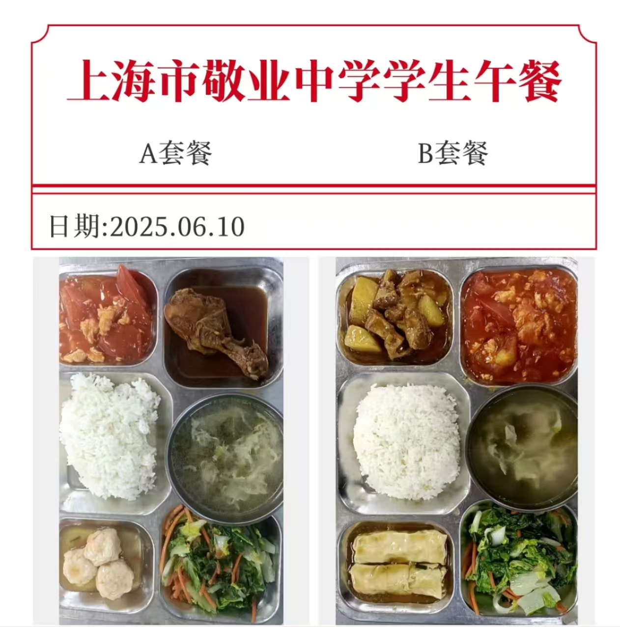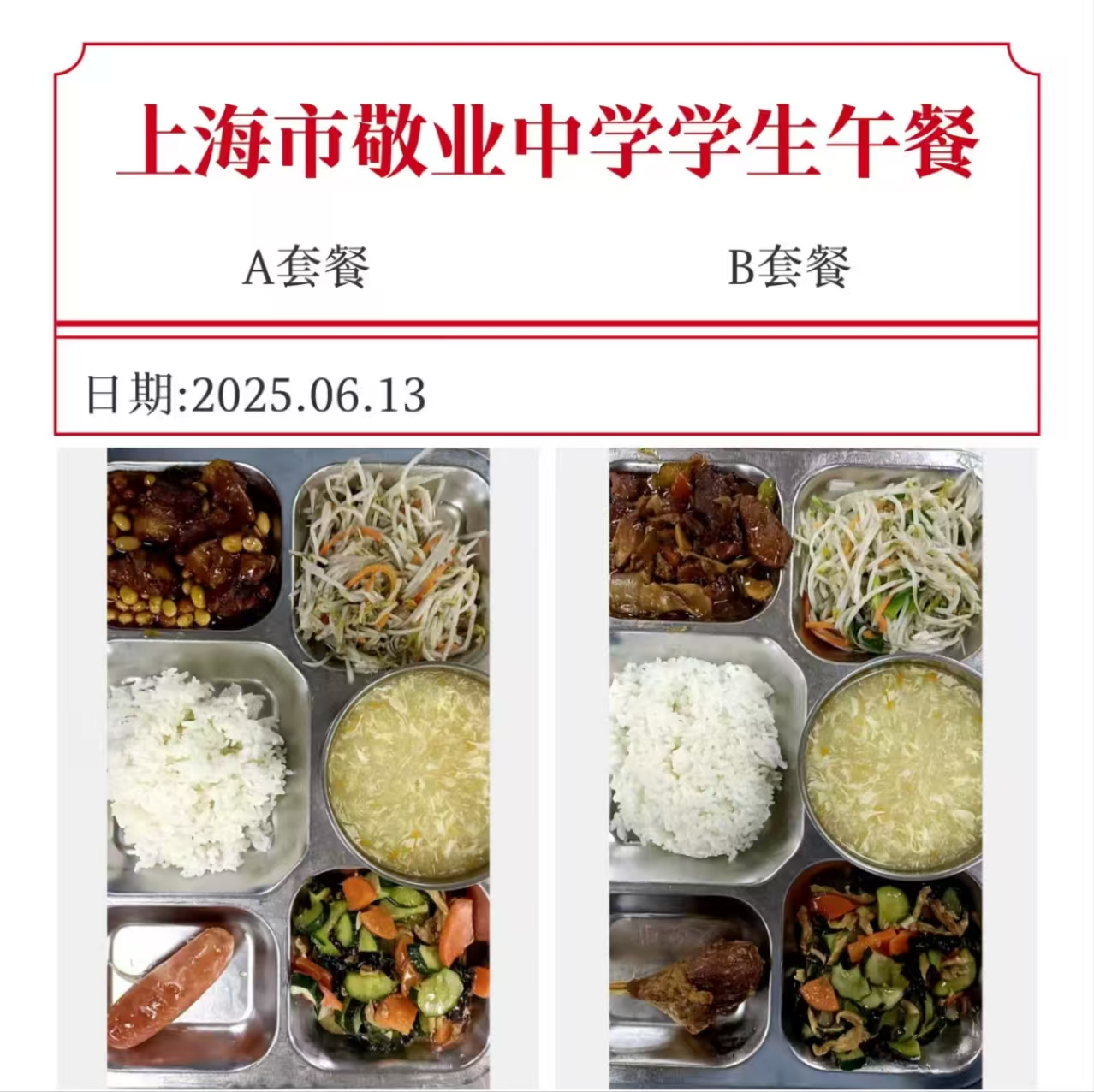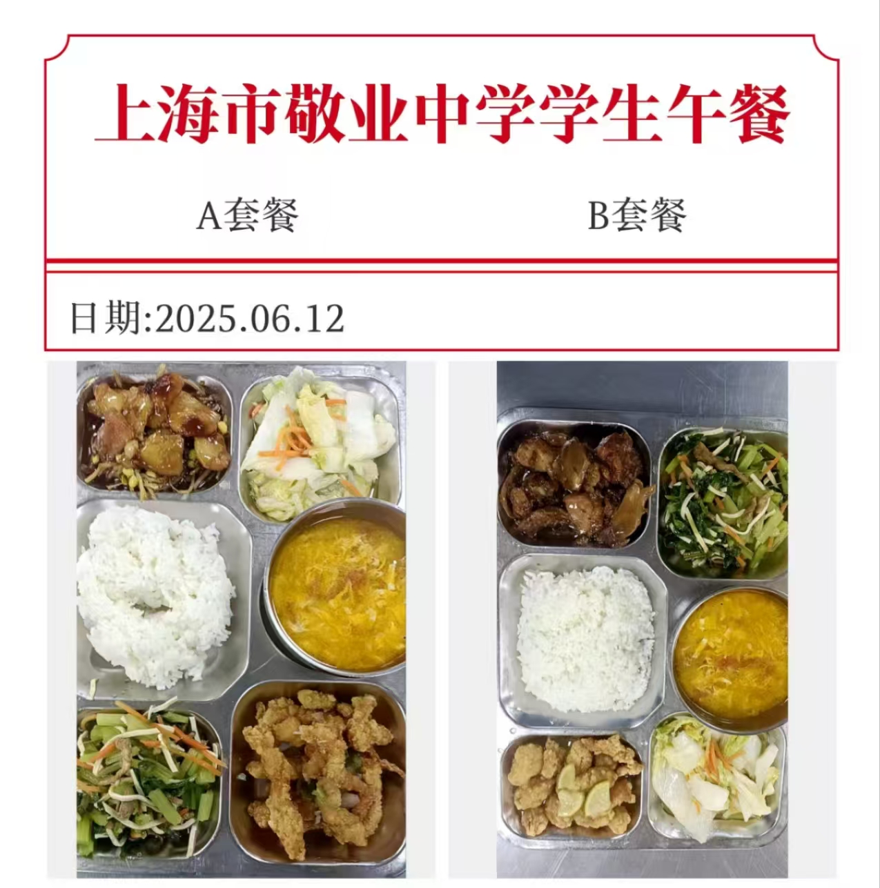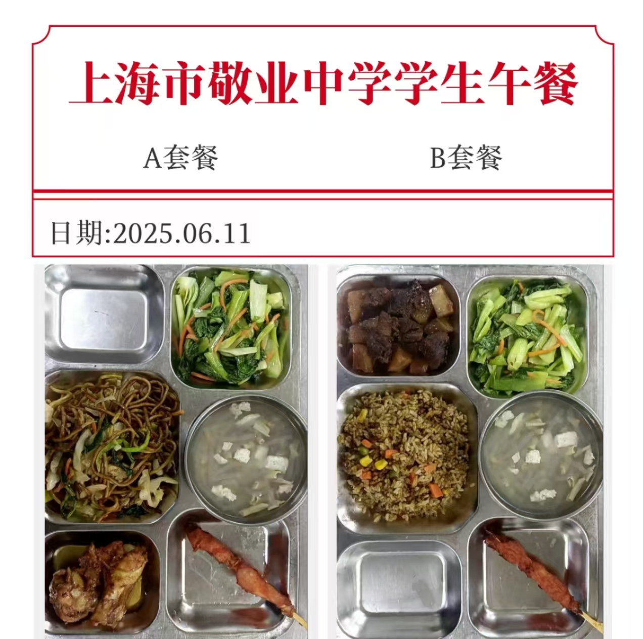 上海市敬业中学第17周学生午餐公示