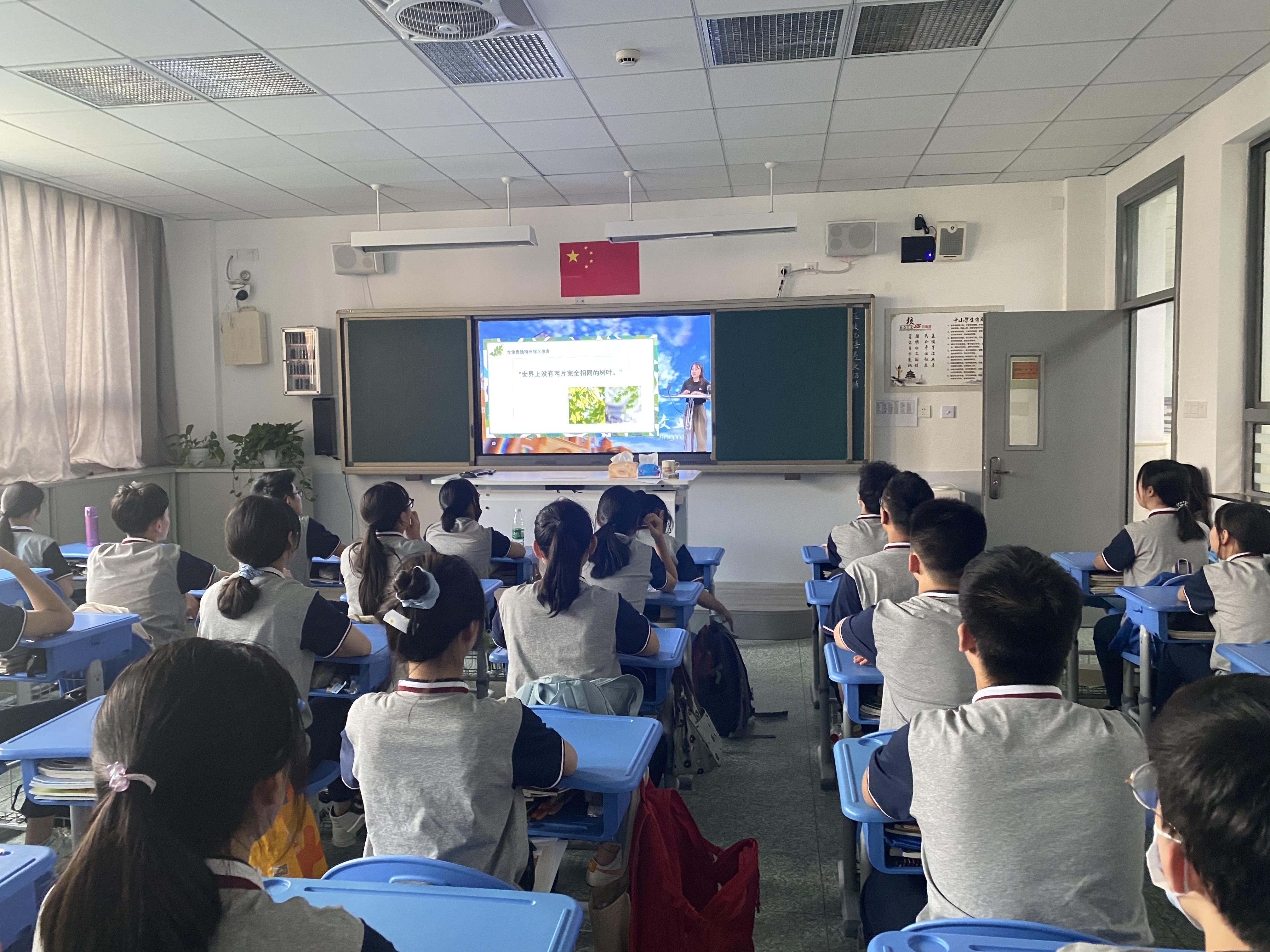 杨老师从生命的长、宽、高出发,启发同学们思考生命的独特性、自主性和超越性。从“世界上没有两片完全相同的树叶”开始,使同学们意识到每个人的生命都是如此与众不同,每一位同学都要在生活中注意安全防护、积极强健体魄、均衡科学膳食、规律生活作息、关注心理健康,学会及时寻求各方支持。通过观看疫情中各行各业人们的无私付出,杨老师向同学们介绍了生命的自主性,也向同学们展现了敬业校友姚锐聪学长如何在高中时期积极发展和成长自我,激励同学们成为最好的自己。在生命的精神高度上,杨老师通过三位敬业校友的职业生涯发展和先进事迹,鼓励同学们在高中期间探索自己的人生价值,突破自我,做一个有责任有担当的人。