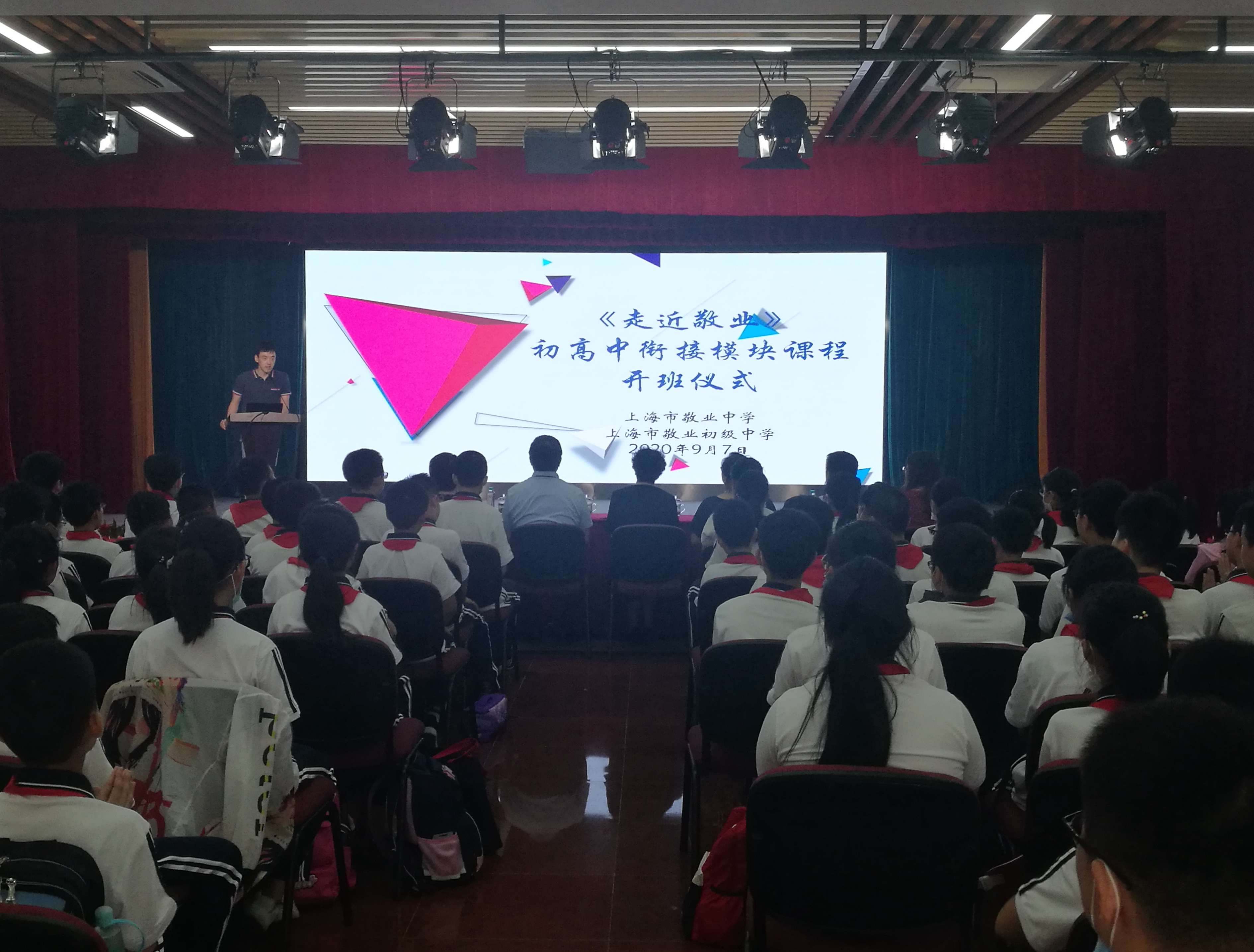 9月7日,敬业校园迎来一批特殊的学习队伍,他们正是来自敬业初级中学预备年级、初一年级四个班级的同学们。今天2020学年敬业初级中学模块式综合性拓展课正式开班。敬业初级中学、敬业中学的校领导们出席开班仪式。