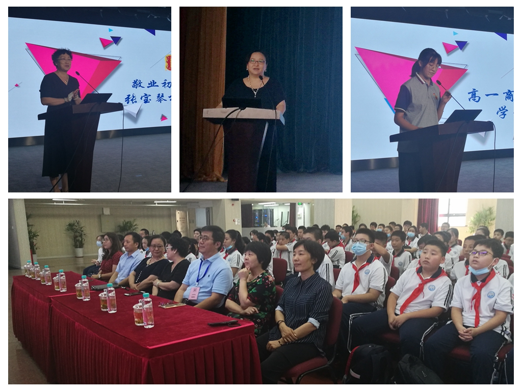 开班仪式由青年教师翁则人主持,围绕走近敬业、走近课程向160余位敬初学子进行相关的介绍。学生们在翁老师精心设计的问答环节中了解学校悠久的历史底蕴,同时被丰富的特色课程所吸引,对我校老师们倾心打造的拓展课充满期待。高一商科班徐阳同学作为敬业链首届模块课程的亲历者,向学弟学妹们分享三年敬业特色课程感受和收获。开班仪式的最后,我校金怡校长、敬初张宝琴校长为学生们致欢迎辞并讲话,期许160余位敬初学子在四年的敬业学习中更早地了解敬业的高中课程,了解作为一个学生逐渐走向社会所应有的广度和深度,在敬业的课程中学习高中生的思维,并真正做到敬业乐群。