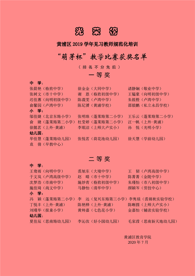 我校见习教师在2019学年黄浦区“萌芽杯”教学比赛中荣获一等奖