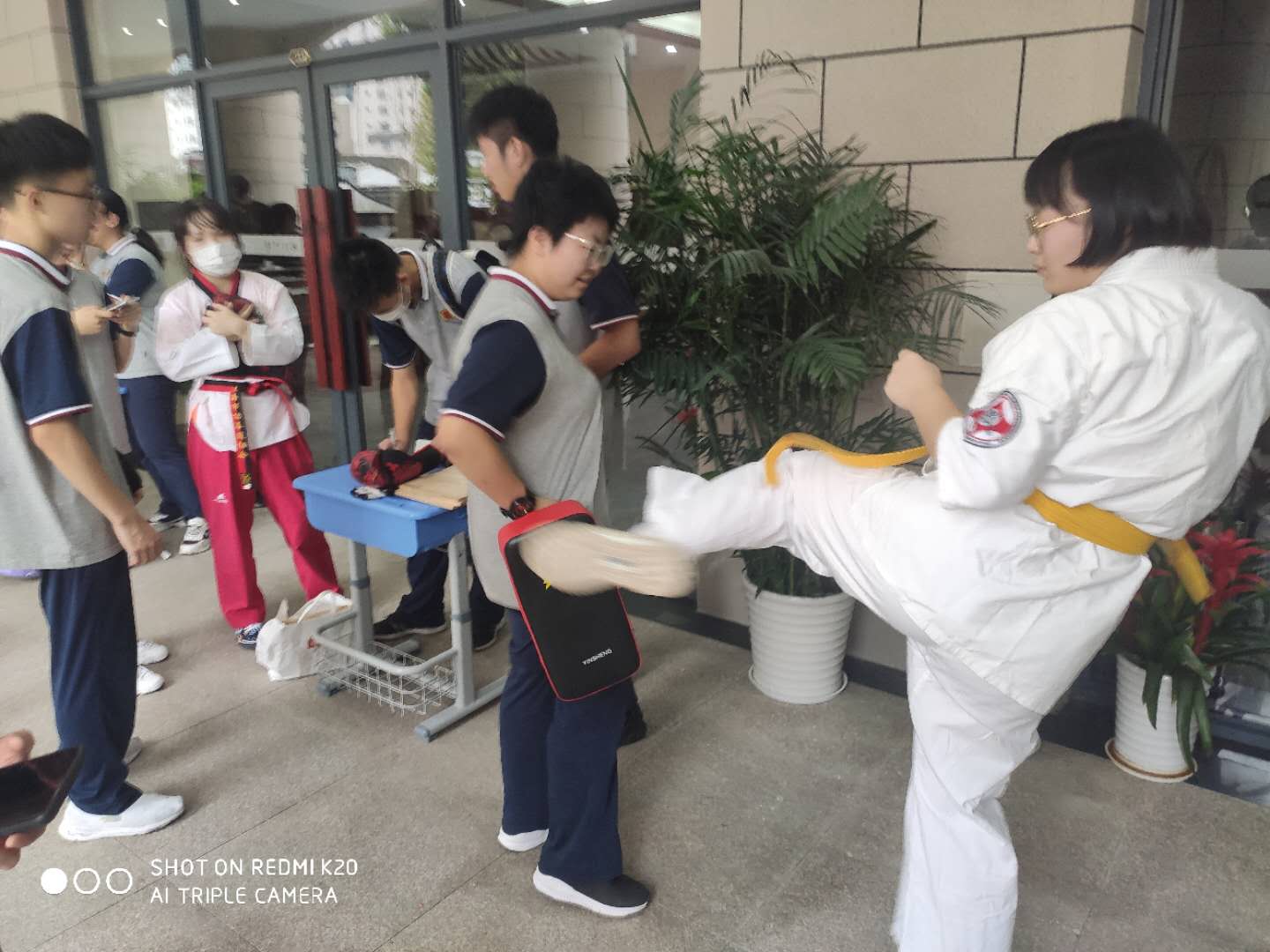 9月10日,敬业中学第三届学生社团节在敬业楼回廊和操场顺利举行。本次活动共有15个社团参加,他们都是具有敬业特色的社团。辩论社、模联社是我校的一大特色之一,社团成员们都有着极其优秀的表达能力。文字类的尽欢文学社、日语社都吸引了许多热爱文学的同学们。戏剧社、街舞社、吉他社也是让热爱表演的同学们有一个非常好的能够展示的平台。五子棋队、围棋社,应用地理社让那些思维能力非常好的同学有了他们的选择。武道社、女篮社和篮球社也成为了体育健将们的选择,还有汉服社、动漫社也非常受大家欢迎。每个社团都提前一周做好了宣传海报。活动伊始,由于天气各个社团都在回廊上布置自己的展位,大家都准备齐全。同学们随着志愿者的引导下,走向了自己喜欢的社团,或体验武道社的踢木板在线教学,或静静聆听吉他的魅力,或听学长学姐的辩论技巧。之后天气好转,全体社团转移到了操场上继续招新,同学们的兴致仍旧非常高涨。各社团也发挥了自己的优势吸引新成员。街舞社的成员热舞吸引了同学们、老师们的注意,更有女生、男生跳女团舞。武道社的社长换上道服,其他成员用手劈木板或高踢腿,让大家能喜欢武道。
