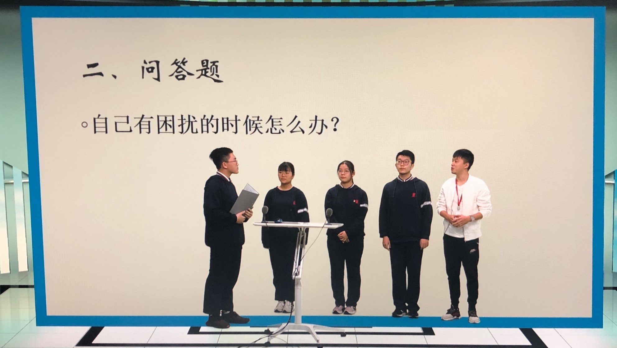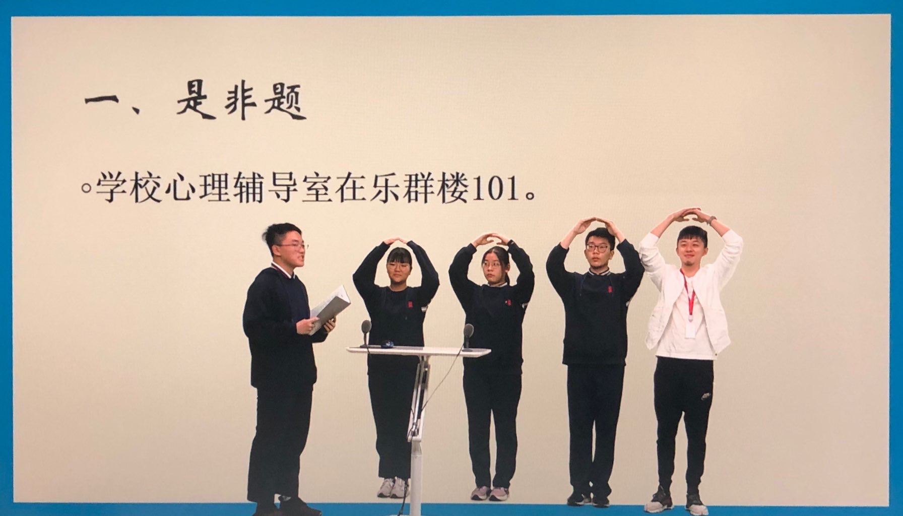 在10月10号“世界精神卫生日”之际,学校开展“心理健康卫士”评选活动,并在升旗仪式上进行预热。高一(4)班张欣、高二(6)班刘雍嘉、高三(4)班黄倪炜、教师刘博伟作为学生和教师代表参加答题互动。通过精彩的是非题和问答题环节,大家对于心理卫生知识都有了更多的了解。