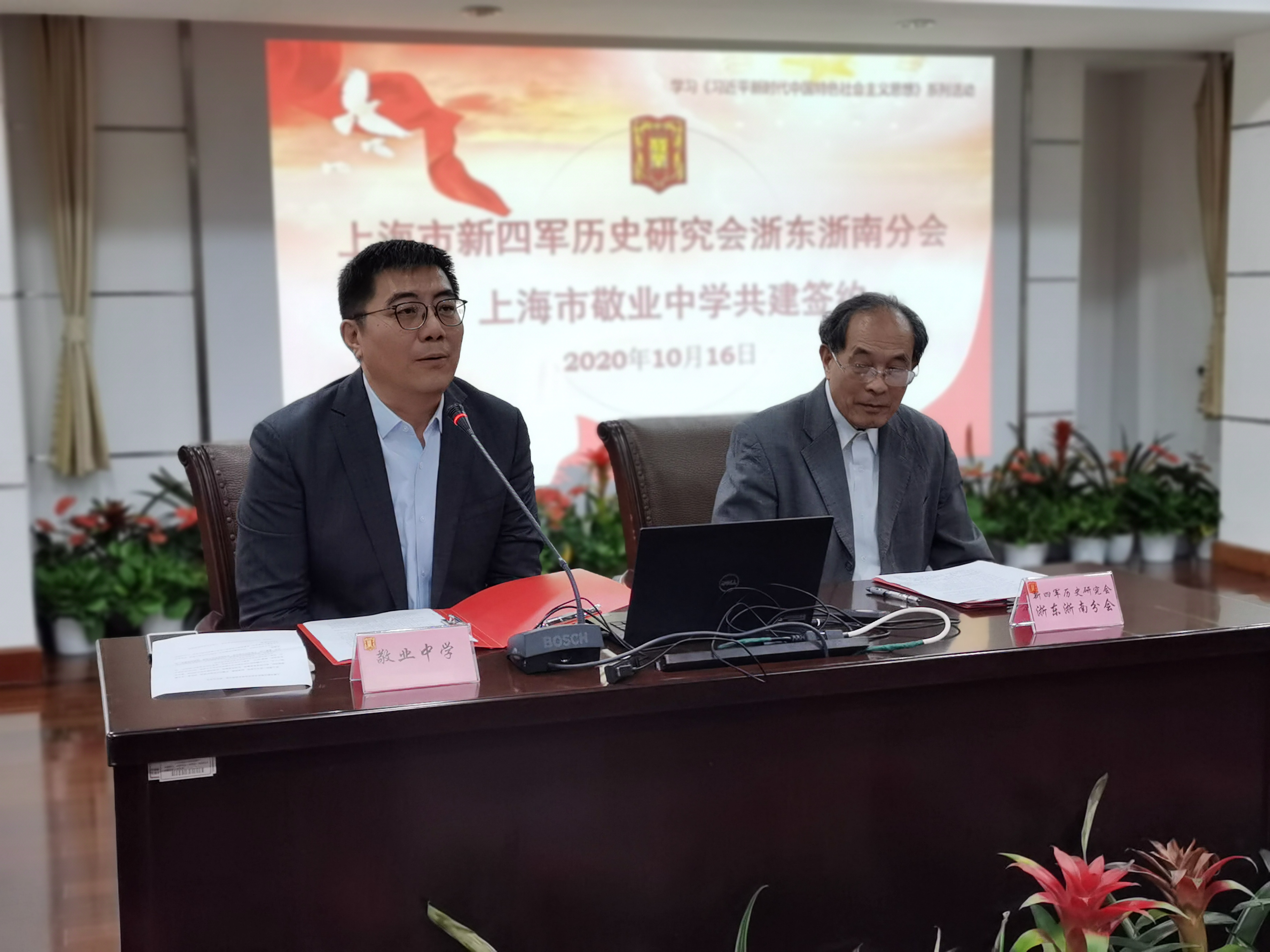 2020年10月16日,上海市新四军历史研究会浙东、浙南分会与上海市敬业中学举行了隆重的共建签约仪式。此次签约仪式由新四军历史研究会浙东浙南会长林云生和敬业中学党支部书记马伟主持,全校教职员工和新四军历史研究会浙东浙南会成员共同参加。