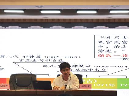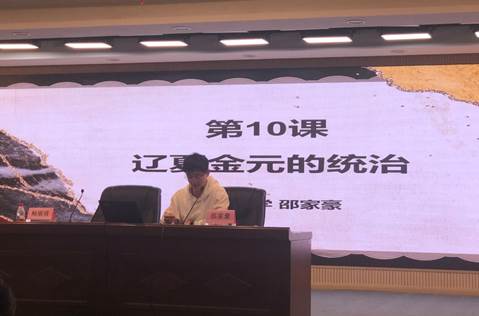 本次研修分为三个阶段,以“单元教学设计”为核心,帮助各区教研员及教师们进一步深入领会全国课标和教材,把握教材的逻辑结构、主要内容及内容之间的联结,同时结合上海经验,形成教学规范,提升教师将教材落实到日常课堂教学的能力。邵家豪老师在研修活动中以《辽夏金元的统治》一课为例介绍了自己对于单元教学设计、“叙史见人”教学策略的思考。