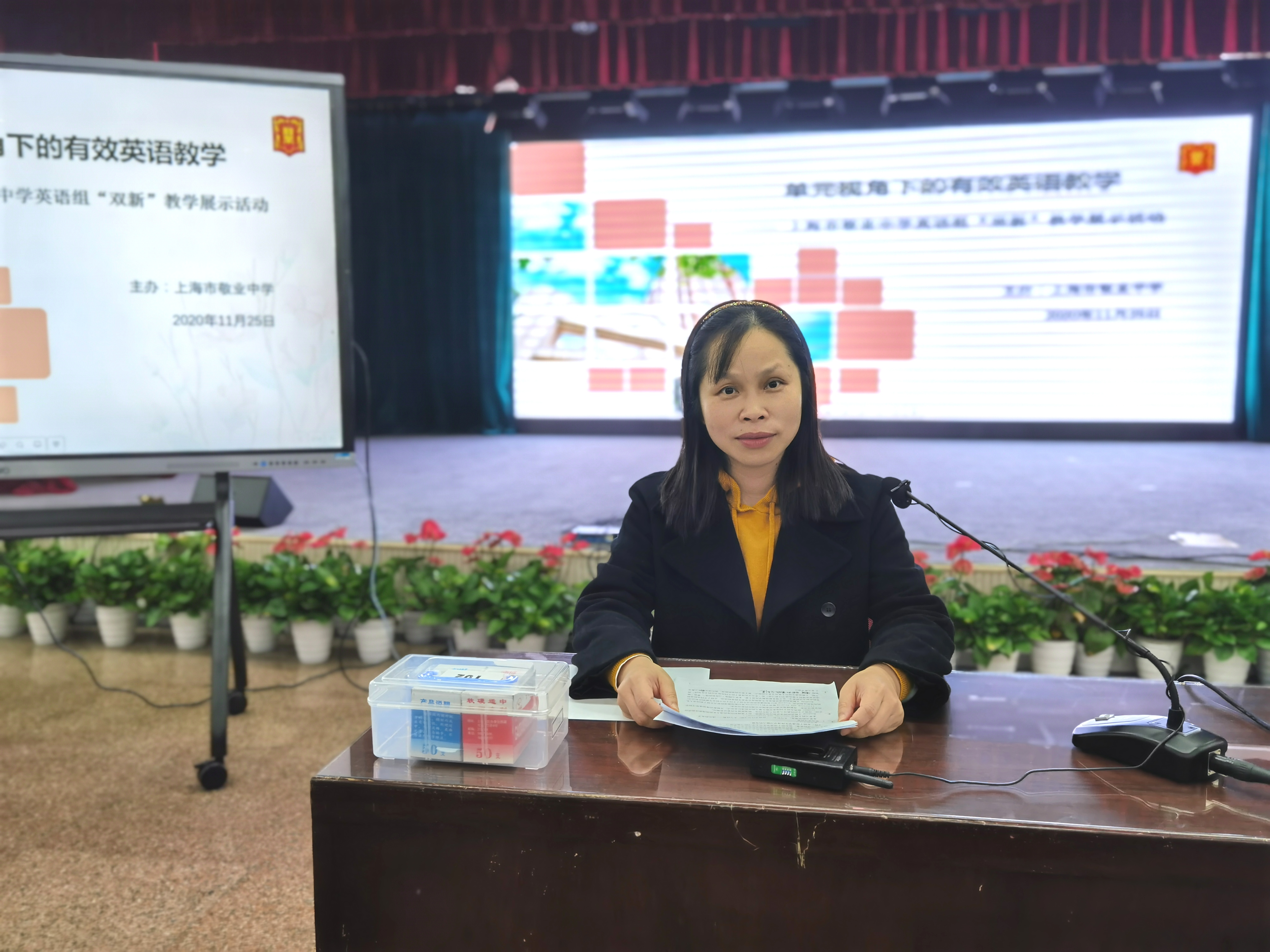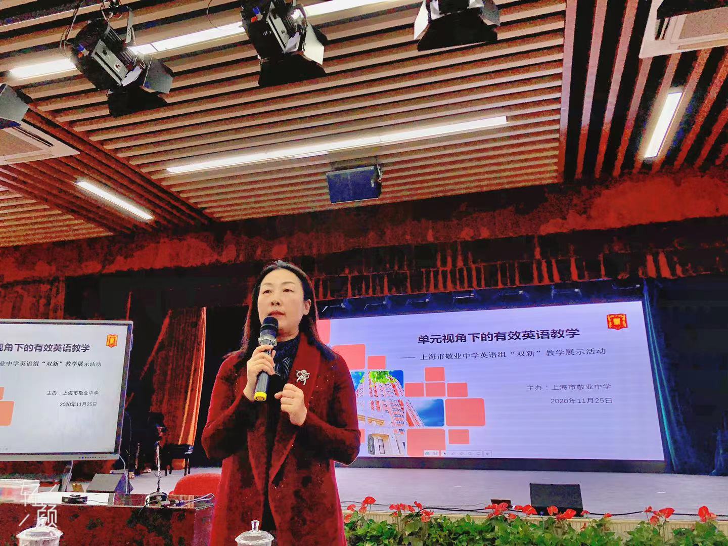 11月25日下午,单元视角下的有效英语教学——上海市敬业中学英语组“双新”教学展示活动在上海市敬业中学举行。上海市特级教师、正高级教师、青浦区原教研室主任、上海市“双名工程”攻关计划主持人陆跃勤老师,黄浦区教育局中教科科长罗小燕,黄浦区英语教研员金敏老师莅临指导。第四期双名工程攻关计划金怡名师基地,杨浦区朱雪艳名师工作室,上海市民立中学,黄浦区外语教学专业委员会,黄浦区金怡英语名师工作室,黄浦区豫园学区等教师同仁参与了线上观摩研讨。