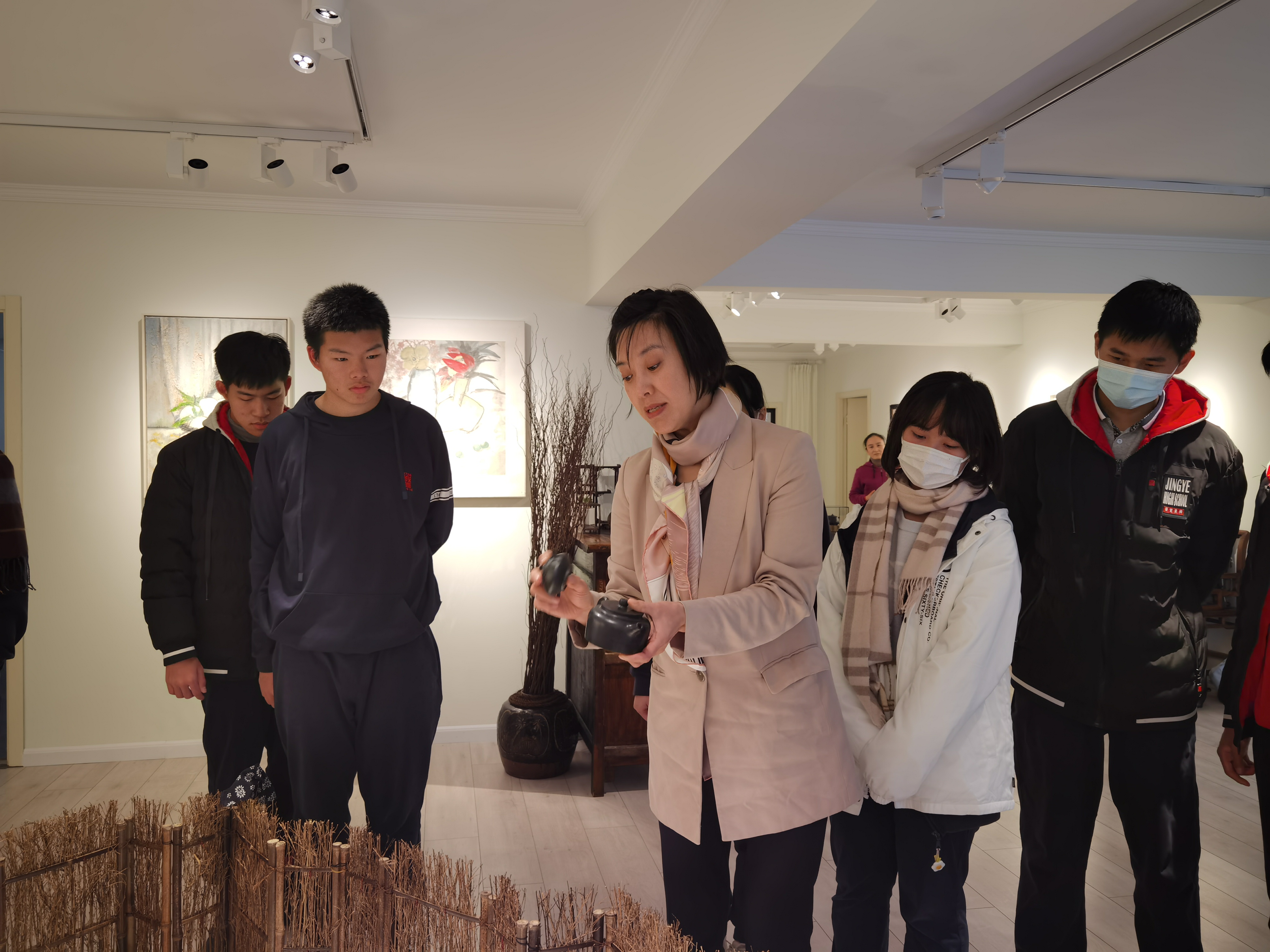 在艺术空间负责人的讲解下,同学们领略了由“上海工匠”袁野老师手工制作并且复原的隶属于中国非物质文化遗产的黑紫砂壶,了解了其复杂困难的制作过程,感受传统工艺的精致与奇妙。同学们同时观看了由央视拍摄的关于袁野老师的黑紫砂的纪录片,更好的从中了解了制作的不易,以及繁琐的过程。同学们在这次的参观体验中收获累累,感受到了中国工匠精神的含义,艺术空间的老师也鼓励同学们要像袁野老师一样不要害怕困难,不断尝试,收获成功。