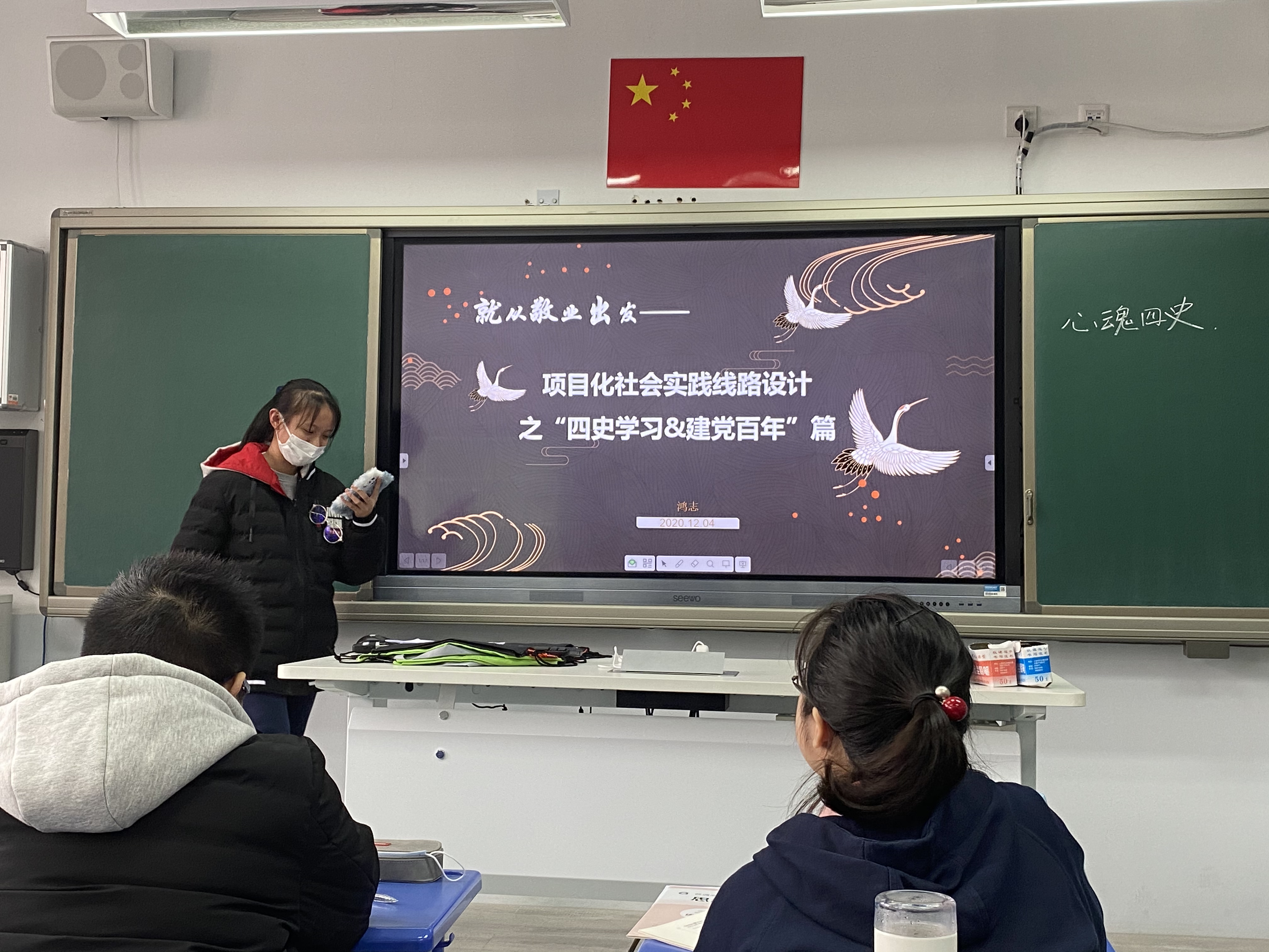 12月7日中午,在高一(7)班内开展了围绕“四史学习”与“建党百年”主题的社会实践线路设计活动。同学们在上周利用了课余的时间,以小组的形式,在老师的指导建议下,自行讨论并设计出一份囊括了设计主题、活动路线、行程规划,活动预算,设计亮点的活动方案。每个小组的方案中都包含了同学们独特的想法和思考,同学们都对此次的活动投入了极大的热情。