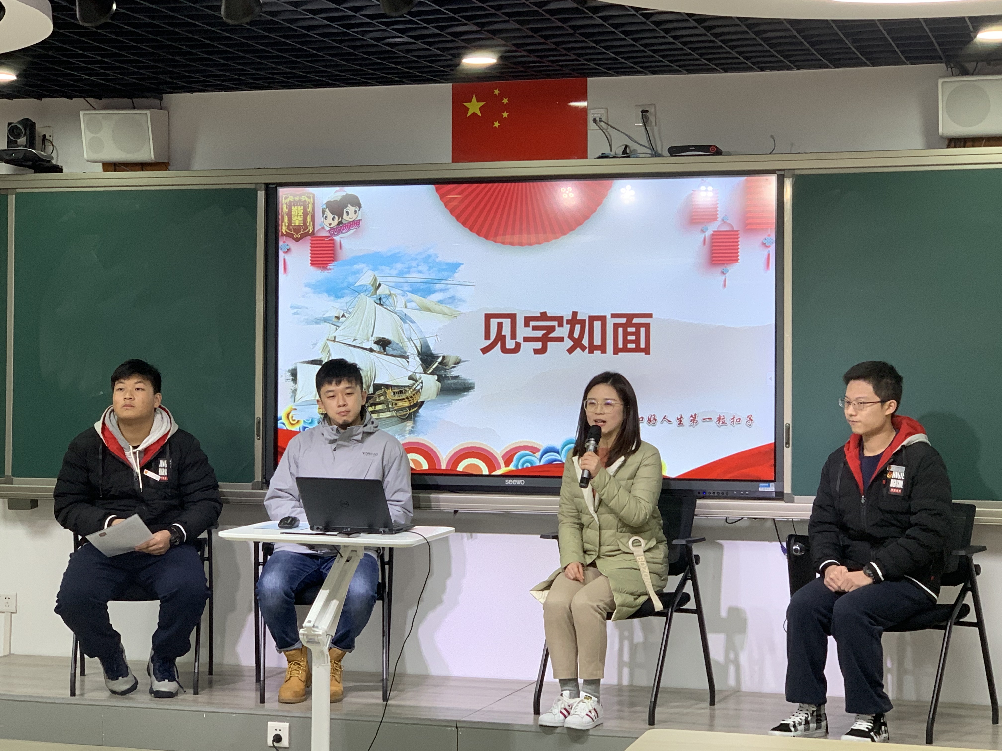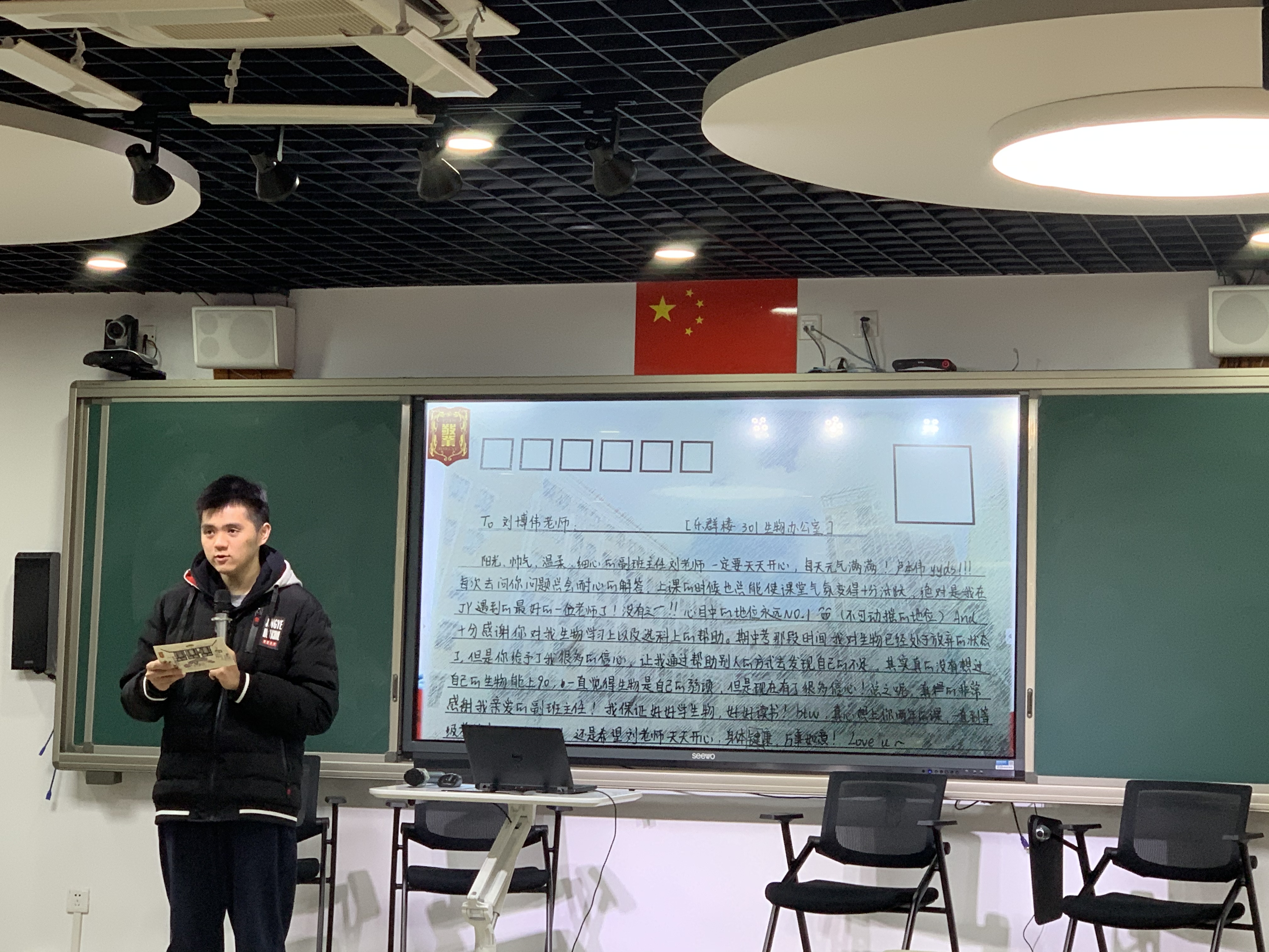 首先,对于我校上个星期开展的明信片活动,进行2020年“见字如面”明信片互寄交流展示,两封来自不同年级的同学亲手写下的明信片展示在大家面前。有的是写给同学的,有的是写给老师的,唯独字里行间的真情和温暖是相通的,感染到了众人的情绪;接着,通过一个师生“见字如面”的形式,主持人也邀请了刘博伟老师和姚小娟老师,以及学生会的孙昊天同学聊了聊他们对这三封明信片以及对本次活动的感想,并且通过互动的形式表达了他们各自对于2020年的感慨和对未来的期望!