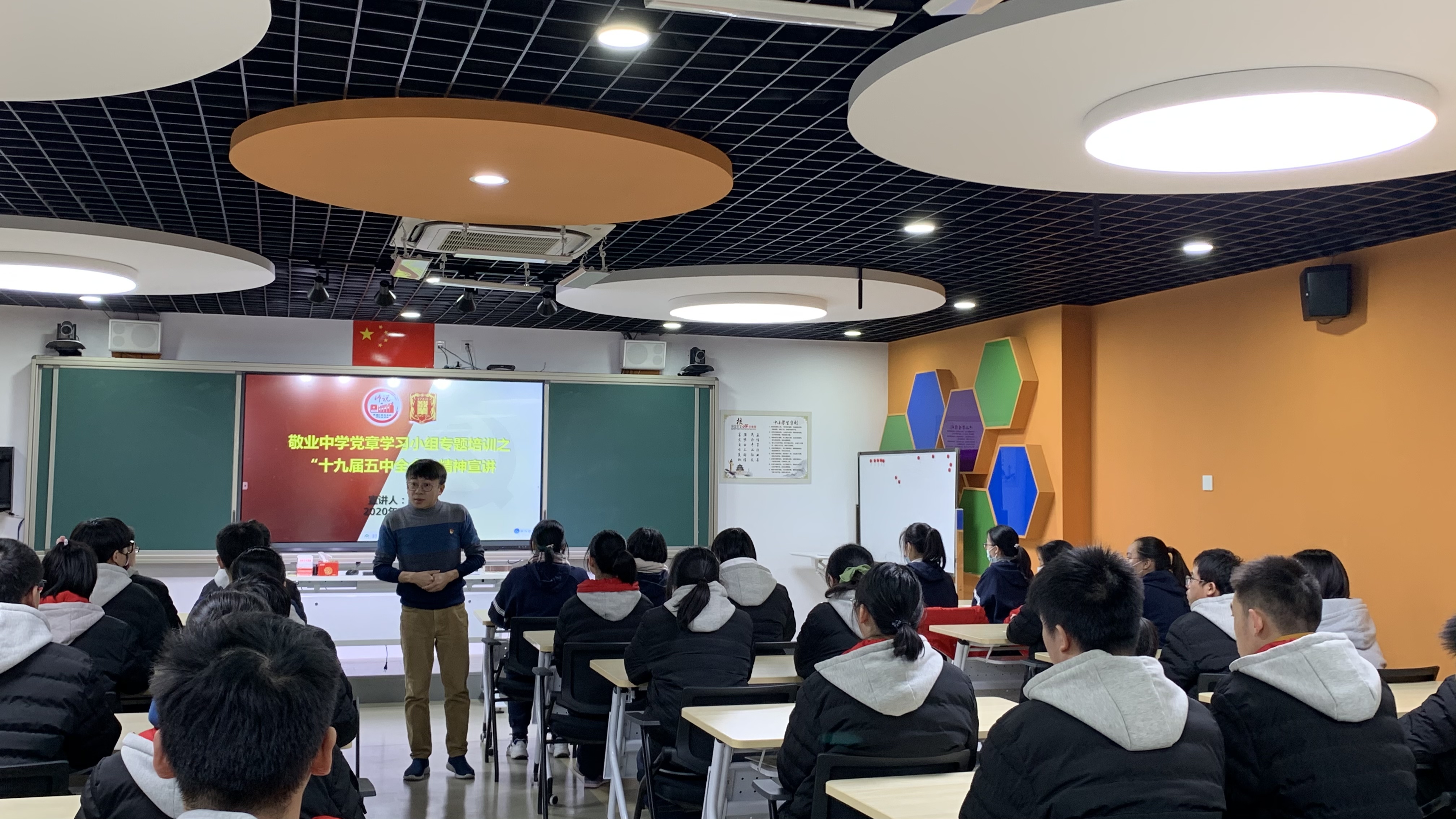 12月29日中午,我校党章学习小组顺利开展 “十九届五中全会”精神专题学习,校团委书记、区教育系统理论宣讲团成员陆俊杰老师作为此次“十九届五中全会”精神专题学习宣讲人。