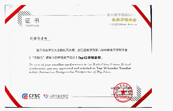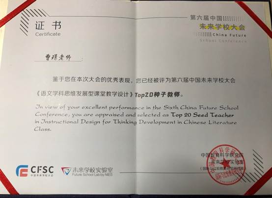 本届大赛设置“大概念视角下的单元教学设计”和“语文思维发展型课堂教学”等五大主题。我校生物组刘博伟老师和语文组曹璟老师历经四个月的层层选拔,参与了概念探析、课程设计、教学视频提交、活动研讨、在线答辩等环节,最终从两个小组中脱颖而出。最终分别刘博伟老师荣获“大概念视角下的单元教学设计”主题top10,曹璟老师荣获“语文思维发展型课堂教学”top20教师称号。