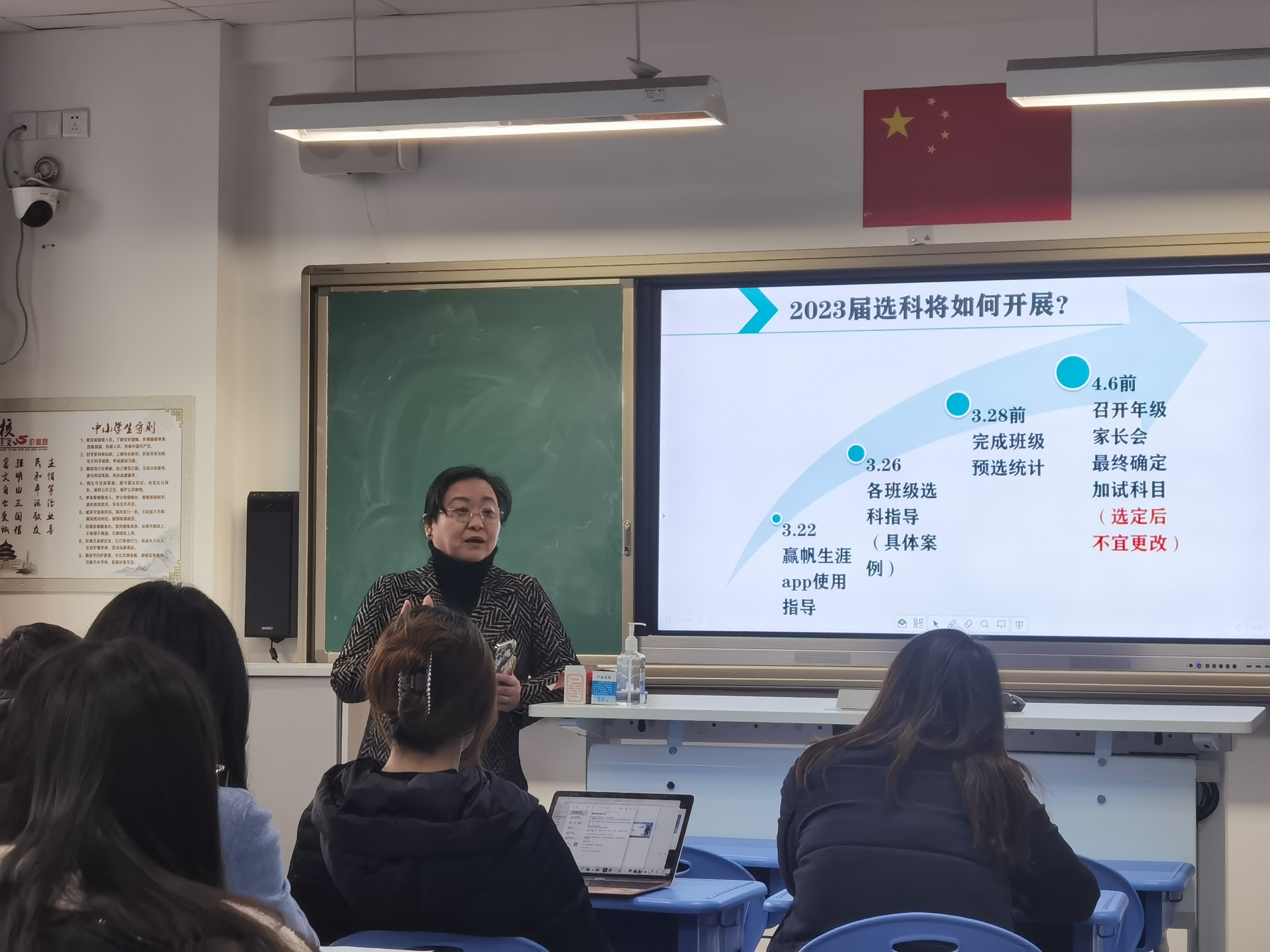 近期我校全面启动校园导师制的培训,首先是在三个年级及“青年汇”教师层面的启动,根据各年级侧重不同,分别开展了高一加三选科、高二等级考前目标定位、高三总分定位填报志愿等各维度、专题化的导师制培训。在金怡校长的带领下,教学、德育、各年级组长、班主任老师及青年老师代表纷纷投入到全方位的导师技能培训中。王骁尧老师针对高一即将选科、生涯规划app的常见使用等话题开展了讲解和培训,翁则人老师结合高二年级当下如何在面临等级考关头准确定位明确目标等主题开展了交流。金怡校长则是站在我校生涯规划自2014年首届高考新政以来,推进的首轮校级生涯规划体系角度,深入阐述了当前生涯规划、学业规划、生涯导师的实际意义,并对于未来更切合敬业学子的实际应用提出了更明确、精准的指向性目标和要求。
