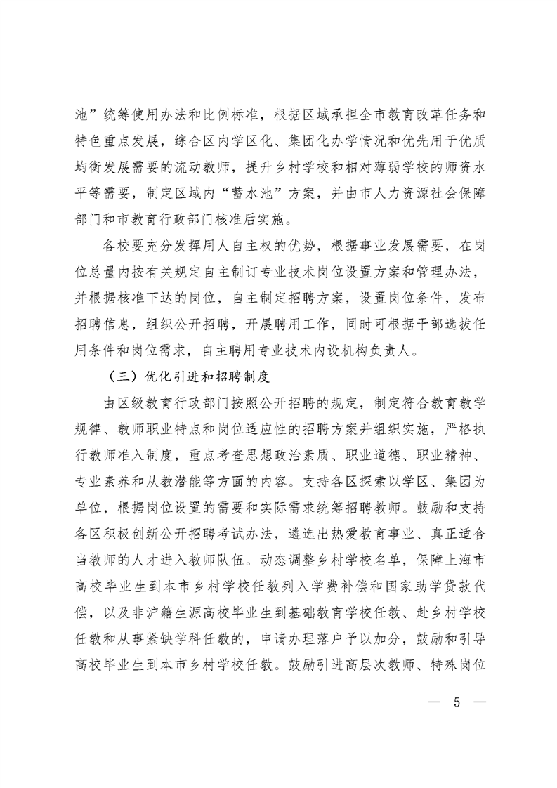 关于进一步加强上海市中小学教师人事管理制度建设的指导意见(沪教委人【2021】1号)