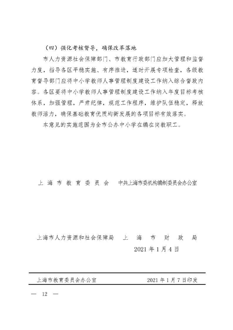 关于进一步加强上海市中小学教师人事管理制度建设的指导意见(沪教委人【2021】1号)-九游会国际