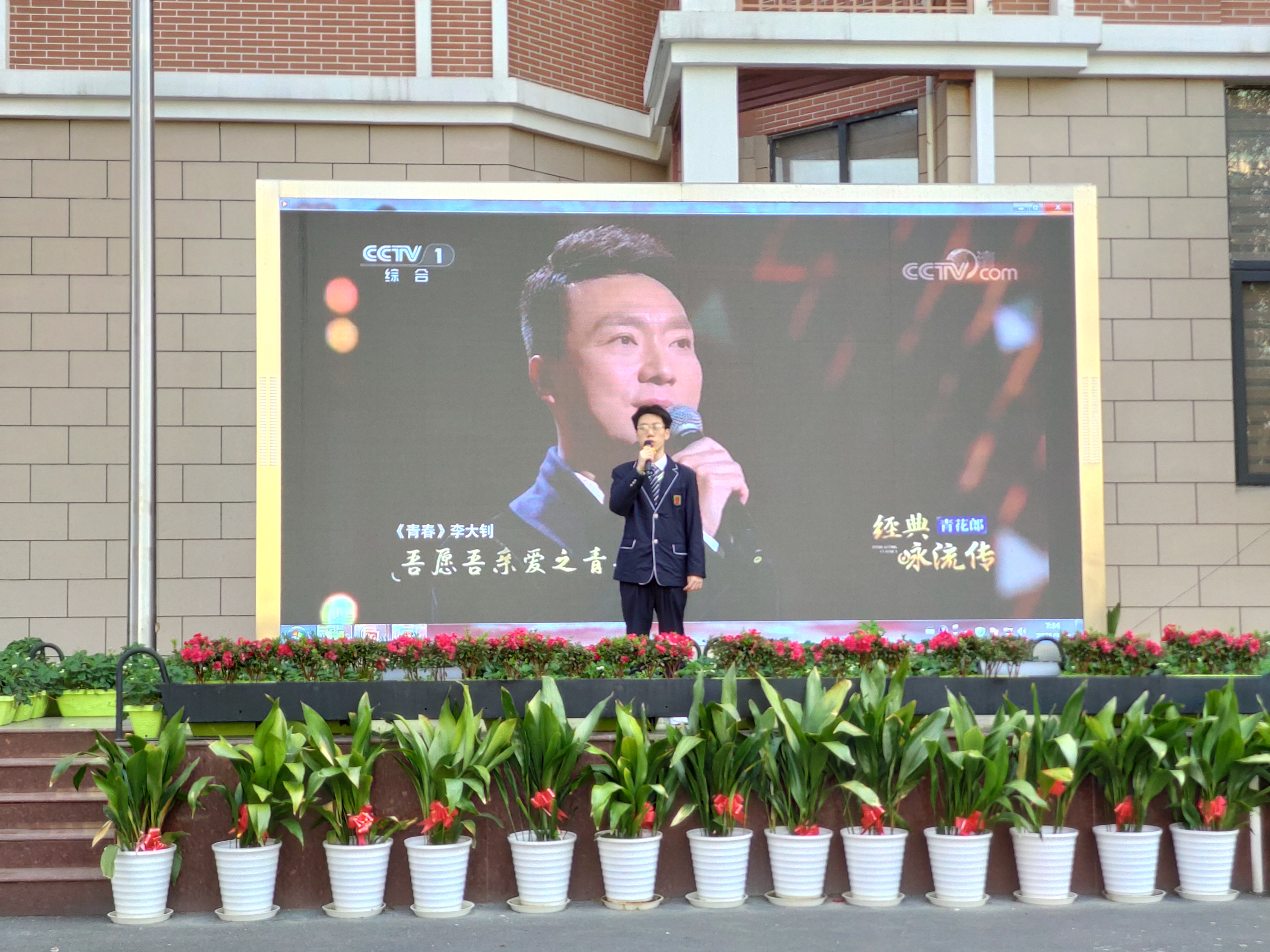 接着,吕老师邀请了来自高二8班的曹安喆同学,为大家朗诵《青春》部分片段,旨在“向李大钊先生致敬”,带领全校师生一起回顾了李大钊同志对共产主义事业无限忠诚、矢志不渝、不懈奋斗的光辉一生,感悟革命先烈的崇高革命精神和伟大人格力量。