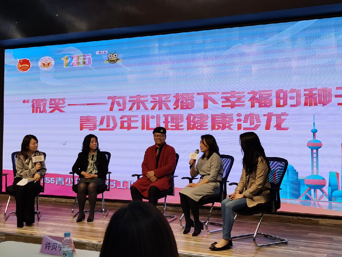 在主题沙龙环节,姚老师又作为一线心理教师,与心理专家、精神科医生、学生家长共同探讨青少年心理健康话题,从心理教师视角分享00后的心理特点,老师和家长如何为孩子播下幸福的种子。