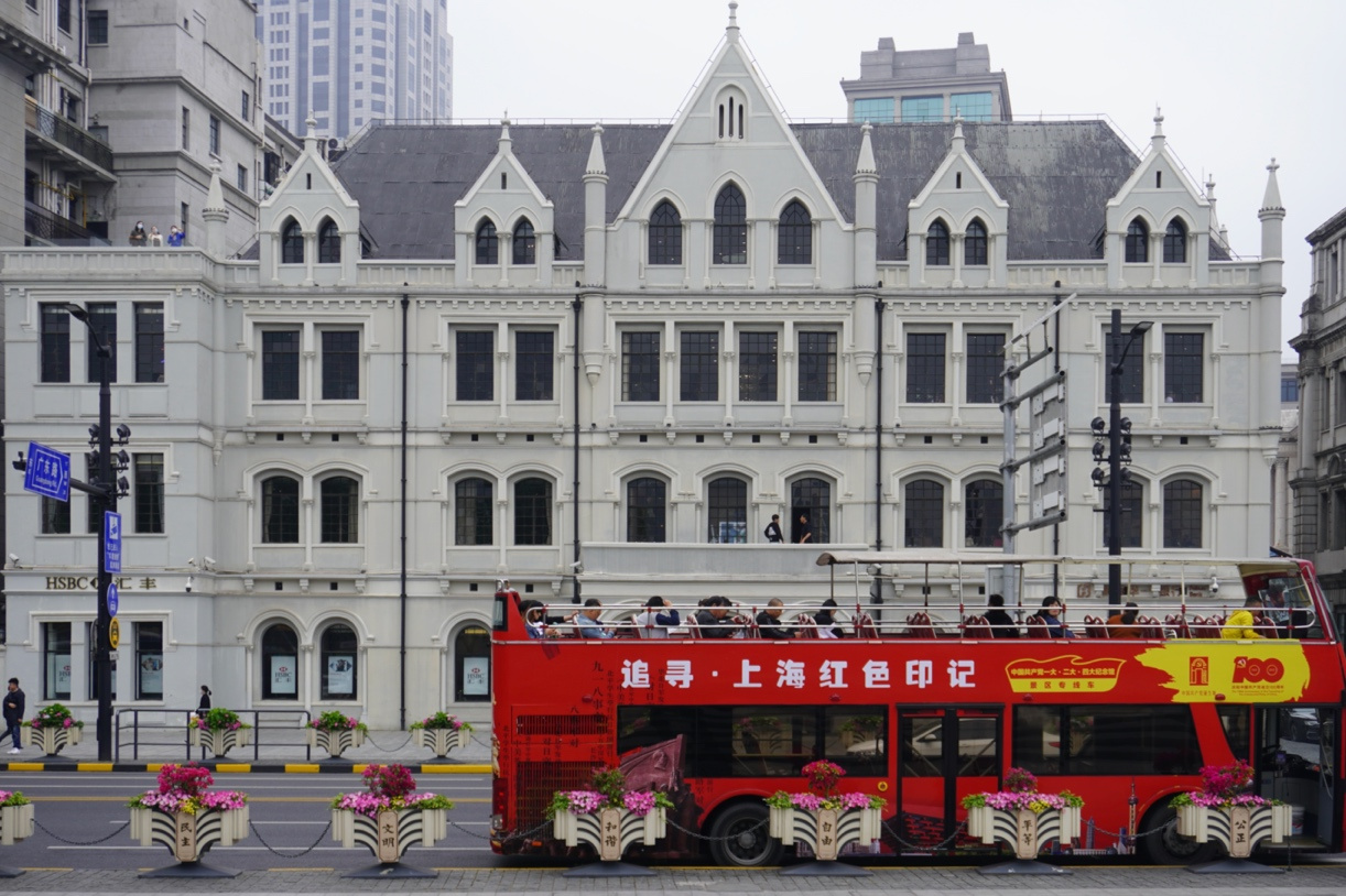 我们穿梭在城市中,从梧桐街边的周公馆,到巷弄间的佳志里;从街边邻里旁的党群服务站,到外滩广场上的陈毅像,我们在地图上绘制红色路线。