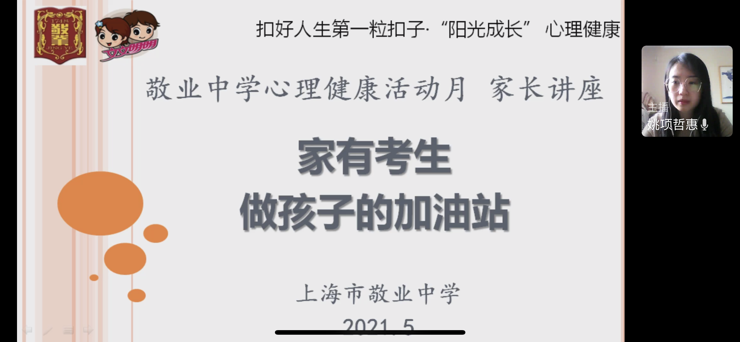 5月5日上午,学校心理教师姚项哲惠向全体学生家长开展主题讲座《家有考生,做孩子的加油站》。此次活动为学校心理健康活动月“守护心灵的春天”系列活动之一,聚焦期中考试后、等级考前,家长如何助力学生正确认识考试,积极迎接挑战。