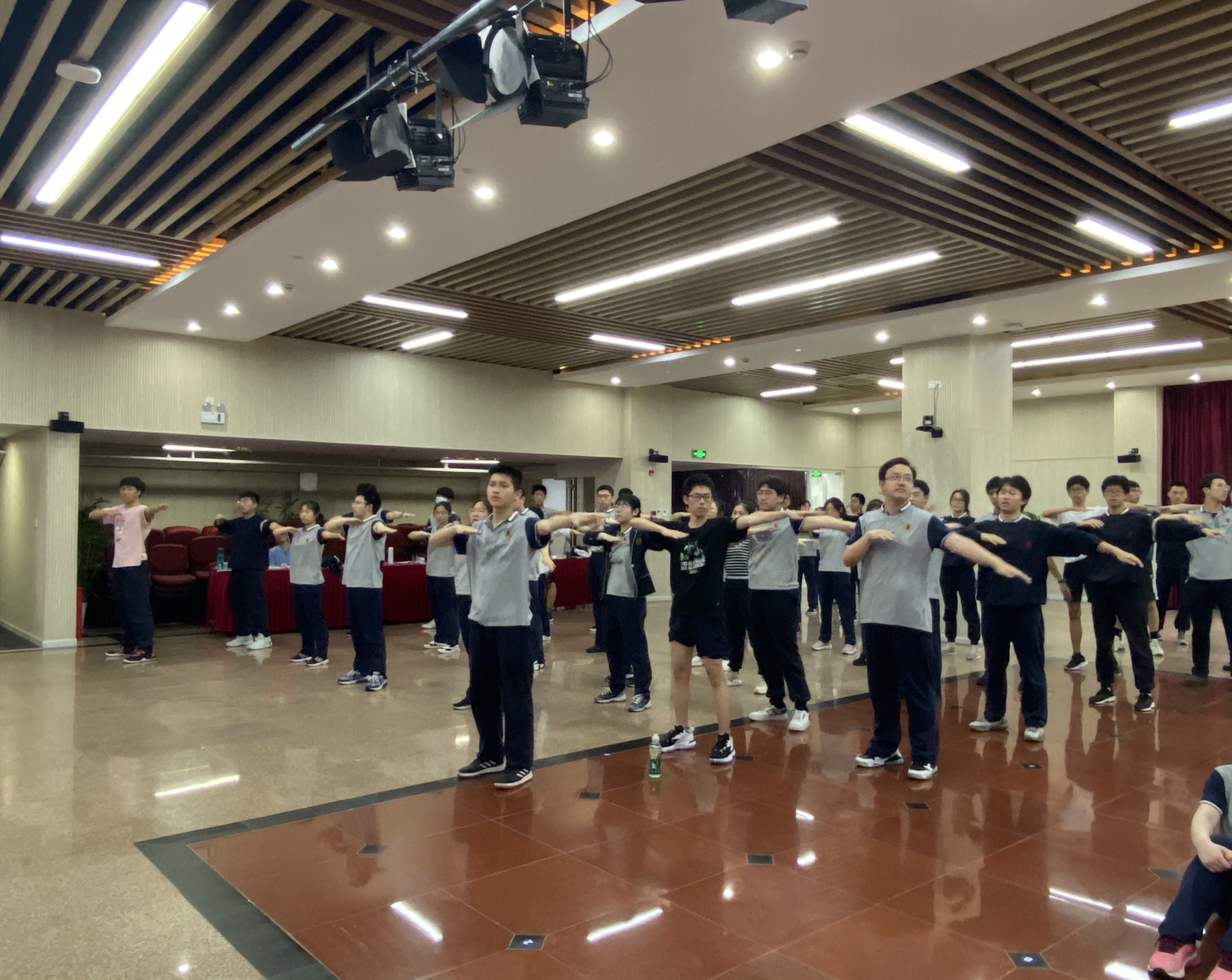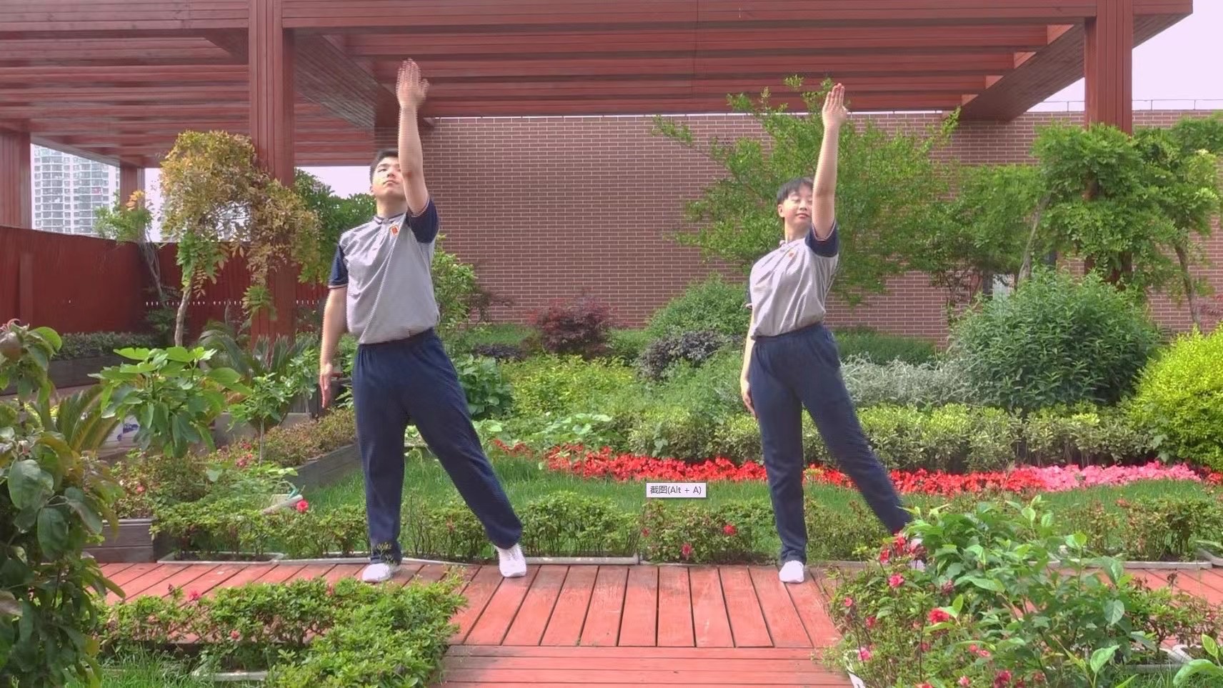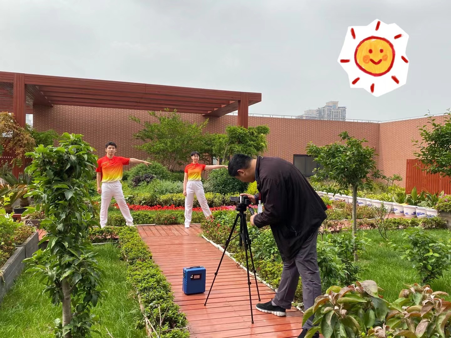 为不断提升我校学子做操热情和质量,新版室内操《为青春喝彩》本周已在高一高二年级试推广,效果良好。新编室内操由体育组余媛媛老师进行编排,高一(1)班李嘉毅、高一(2)班吴菁祺、高一(7)班姚奕、陆熠桐四位学生作为示范人员参与训练和拍摄,艺术组丁江平老师为本套室内操设计了精美封面,电教组马虹老师进行了室内操的摄制。当天,录制地点选在敬业楼七楼的空中花园,阳光明媚,生意盎然,更能体现少年们的青春和活力!