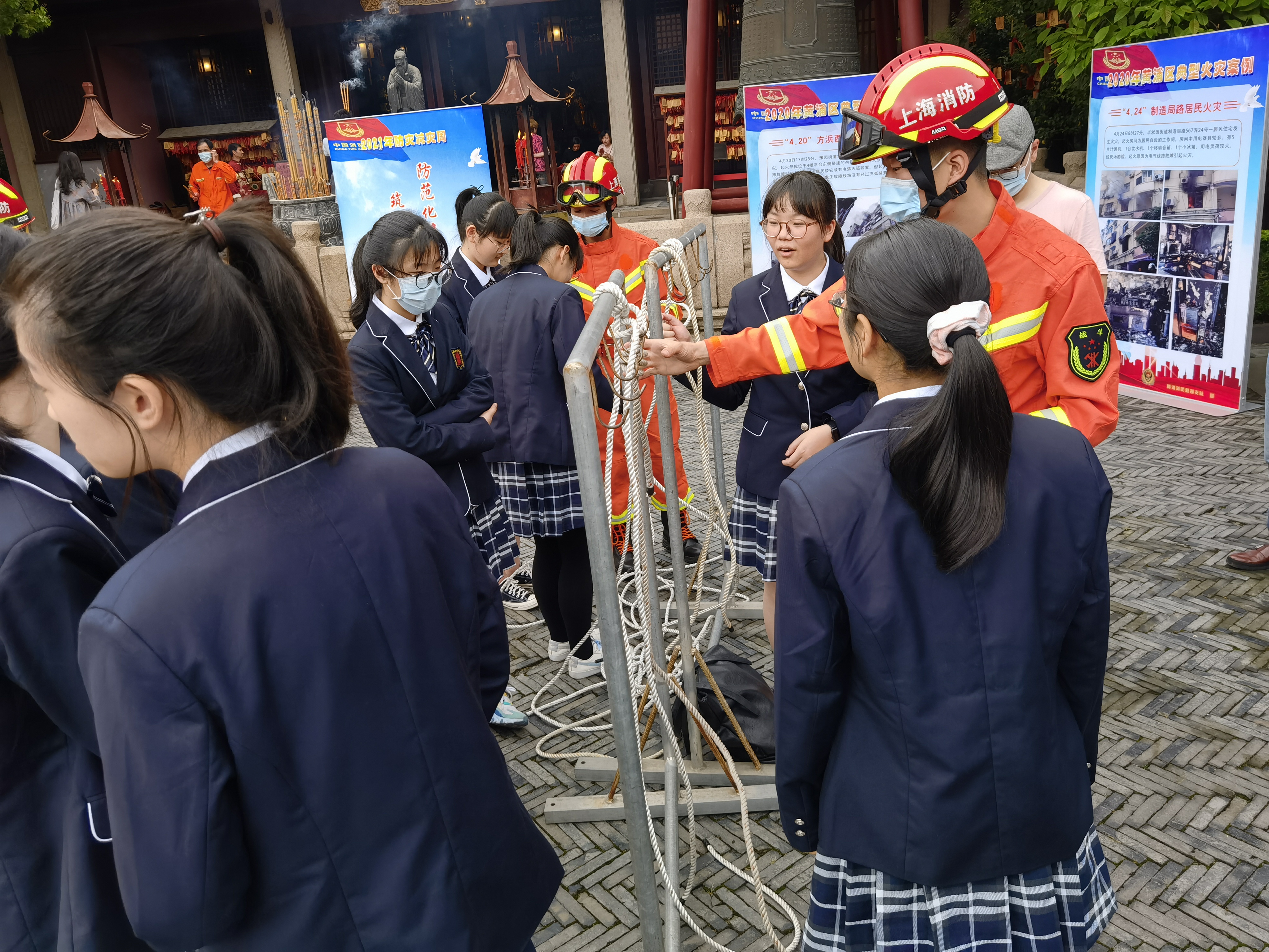 2021年5月12日上午,上海文庙举行黄浦区全国防灾减灾日宣传活动,我校钟思慧、丁江平、廖品皓三位老师,以及高一1班和高一5班的班主任和同学们分别前往参加活动。