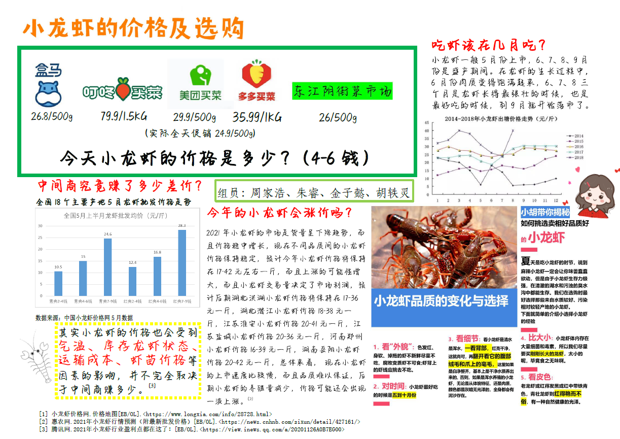通过此次活动,学生衔接课内外知识应用于海报制作,对于科学论证和科学探究的方法进行了实际应用,对如何筛选可靠的文献资料和图片资源进行了深入研究。当前正是小龙虾大规模上市步入餐桌的时节,恰逢其时的科普活动也为敬业人提供了加深了解小龙虾的机会。