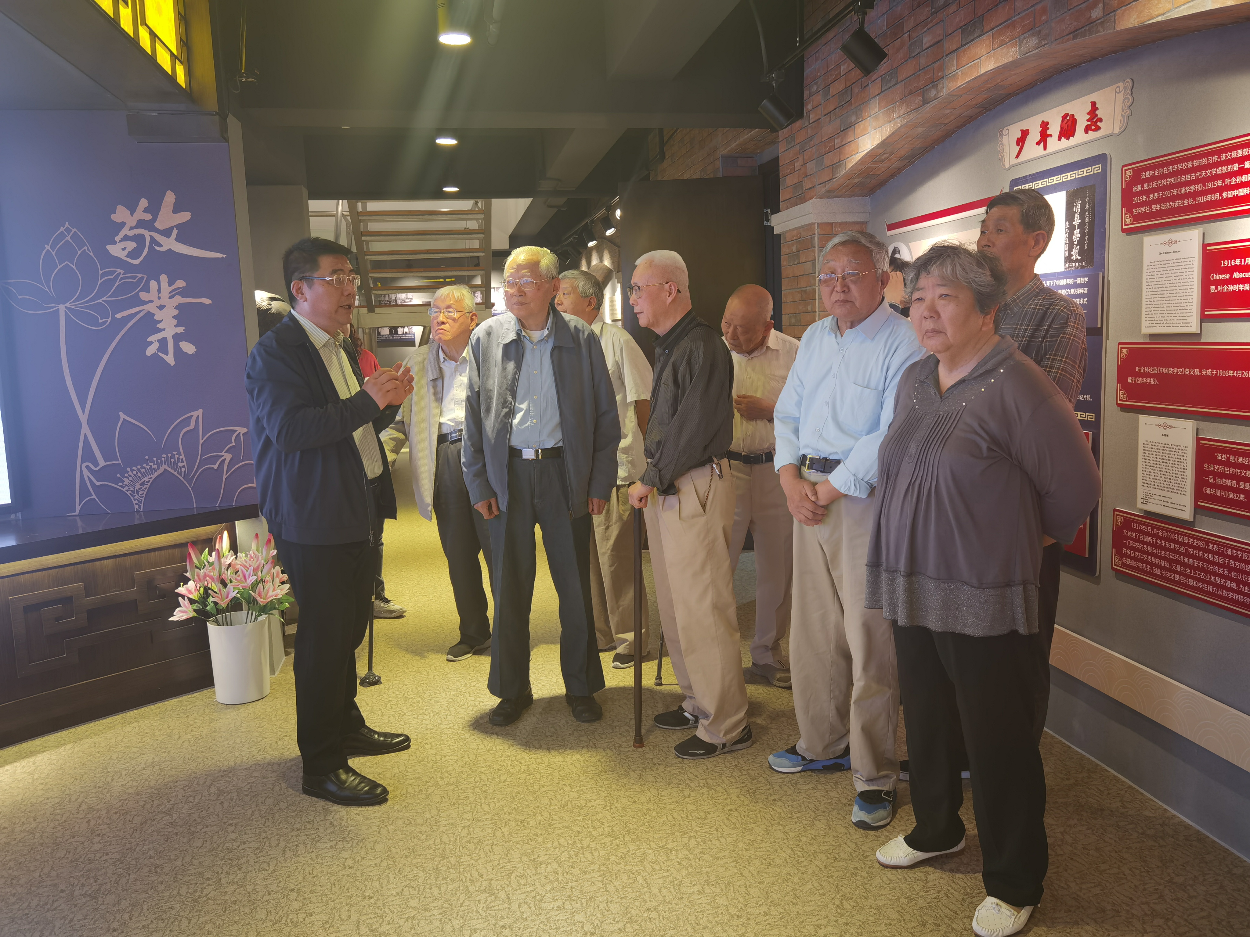 老领导们虽然退休已久,但仍在力所能及范围里发光发热。人群中年纪最小的敬业钱君端校长自称是这个天团里的“小妹妹”,前不久刚刚为校史陈列室撰稿完成了2000年初的信息素养校级课题回忆录。大同中学老校长杨明华,亦是一名敬业校友,在参观企孙纪念馆中尤为动容,感叹道:现在的教学环境是昔日教育工作者所不可想象的,在敬业的百年校史里有太多值得挖掘的人和事,作为敬业人当属荣幸之至。退休十余年的敬业老校长朱再宇饶有兴致地参观了校园,称:“现在的敬业班子空前融洽,敬业的未来不可限量!”对于敬业的赞赏之情溢于言表。