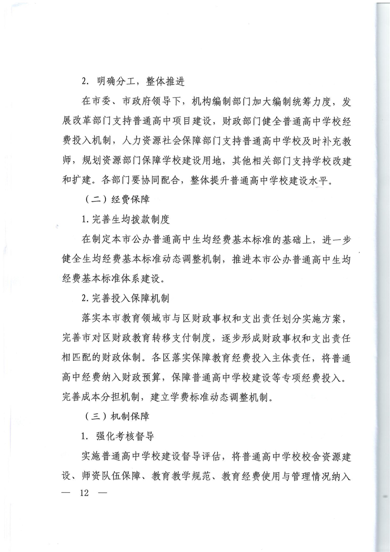 上海市教育委员会等十部门关于推进普通高中学校建设的实施意见