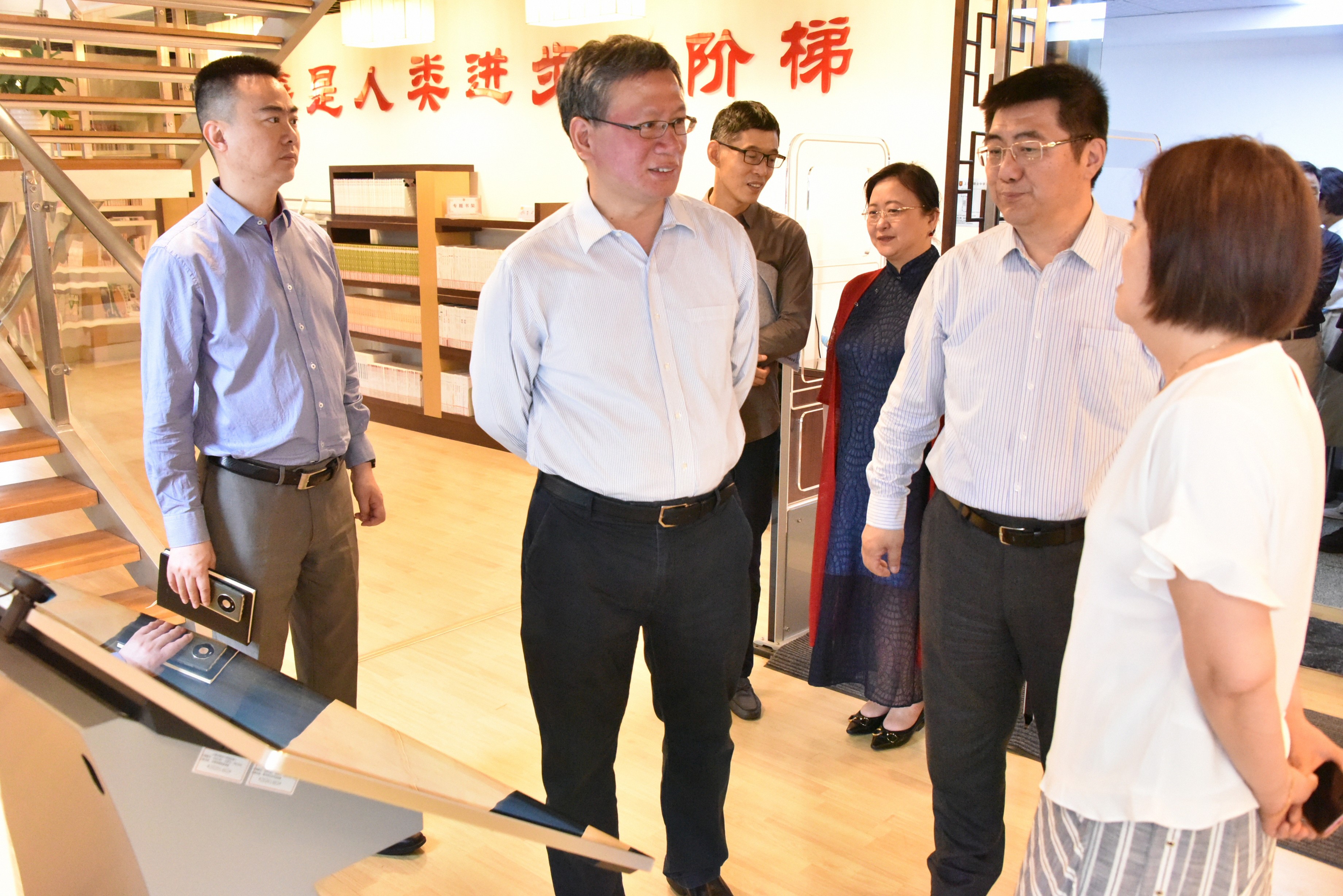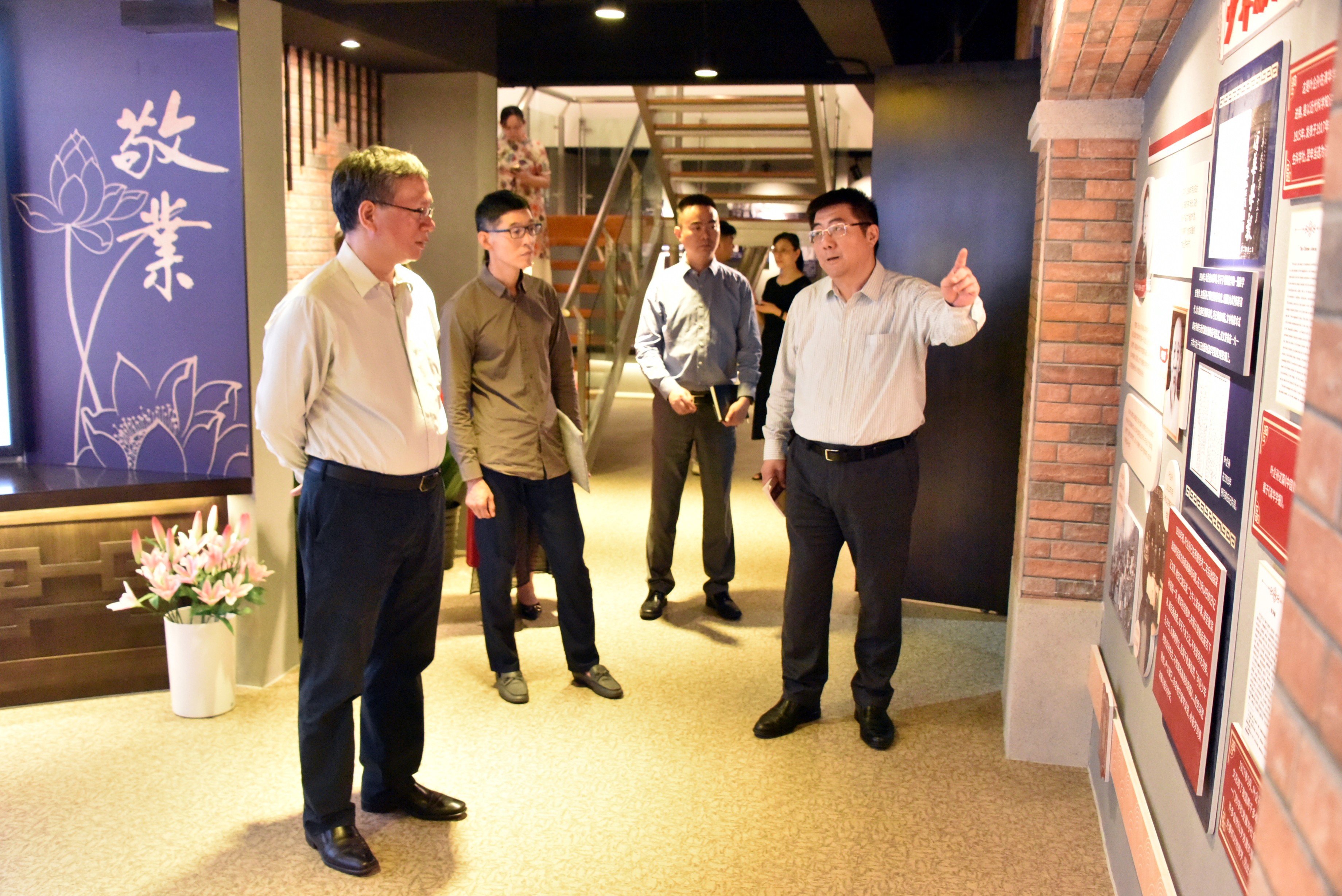 吕书记一行参观校史陈列馆和叶企孙陈列室,了解敬业办学历史、教育理念和红色革命史;走进图书馆和吊装生化实验室,关心学校教育教学活动软硬件建设情况。金怡校长就学校“五育并举”课程体系建设、学生生涯规划指导和专业教师队伍建设等方面进行了工作汇报。