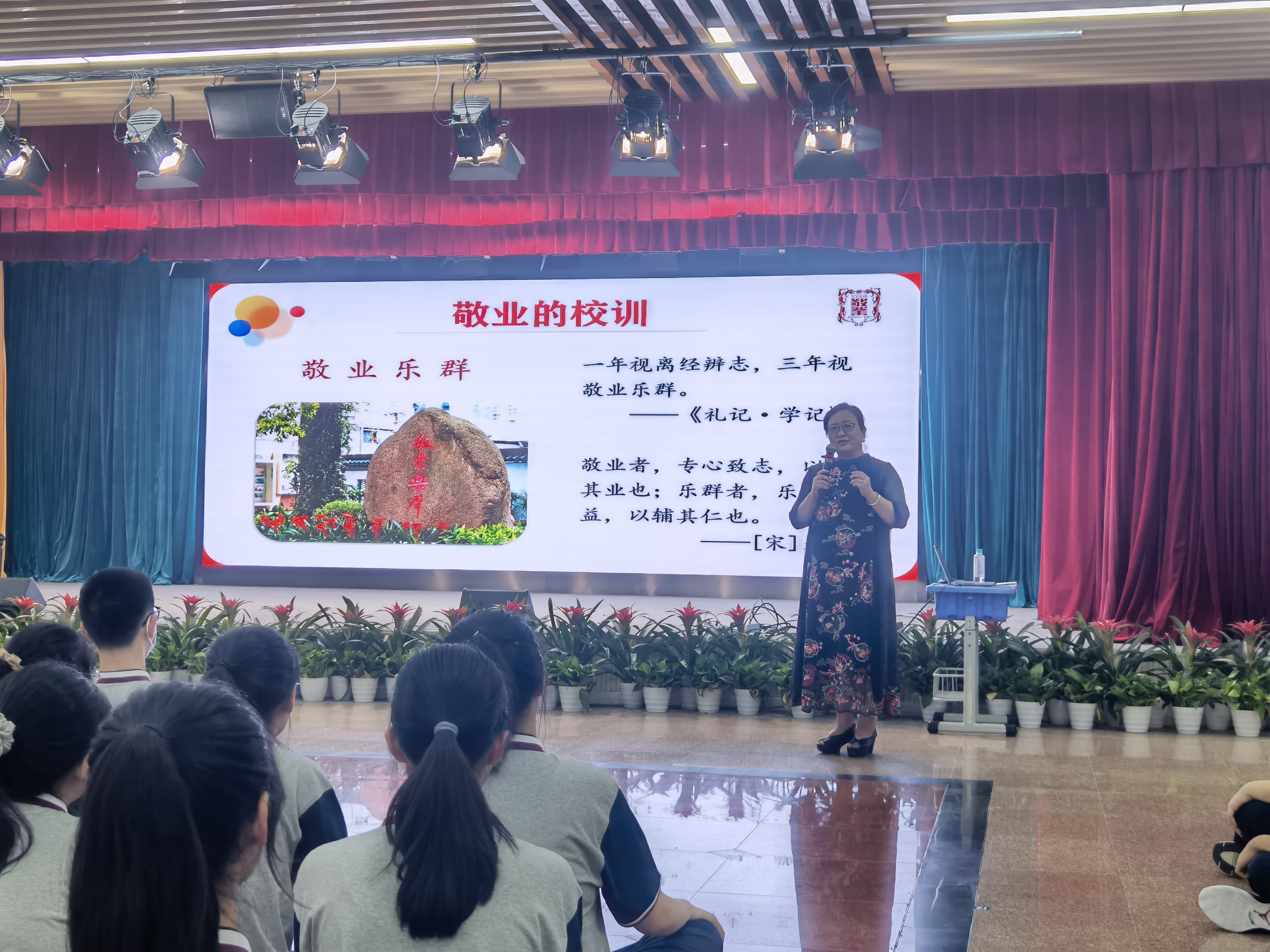 最后,校长金怡通过丰富的实例、详实的数据,在互动中从敬业历史到敬业校训,从教师风采到学生荣誉,从高考新政到生涯规划,从品牌活动到师生寄语,为同学们打开了高中生活的大门,现场气氛十分热烈,同学们时而倾听时而沉思,纷纷开始为自己的高中三年确定目标和计划。