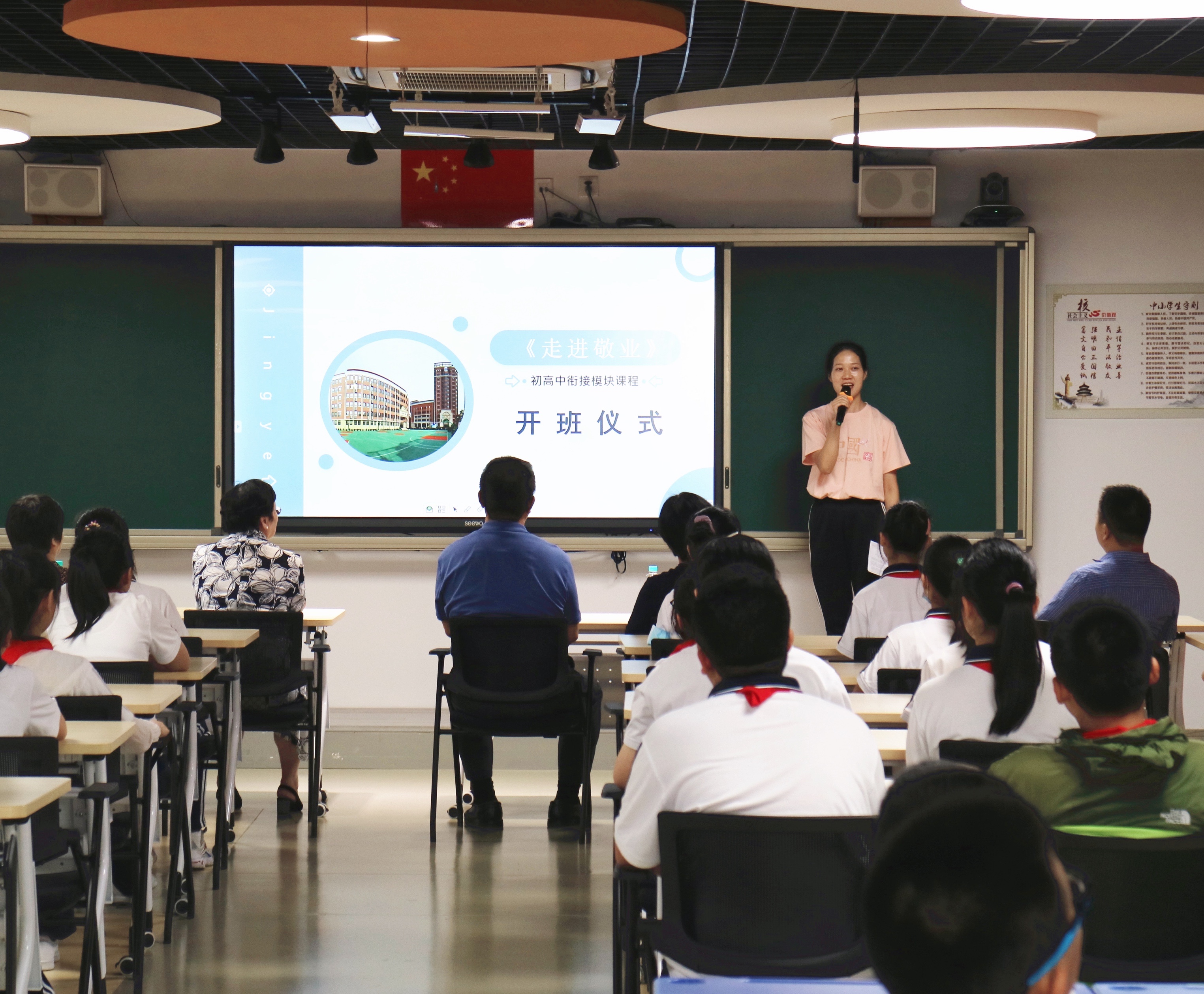 9月27日,敬业校园迎来一批特殊的学习队伍,他们正是来自敬业初级中学预备年级、初一年级四个班级的同学们。今天2021学年敬业初高中衔接模块课程正式开班。敬业初级中学、敬业中学的校领导们出席开班仪式。