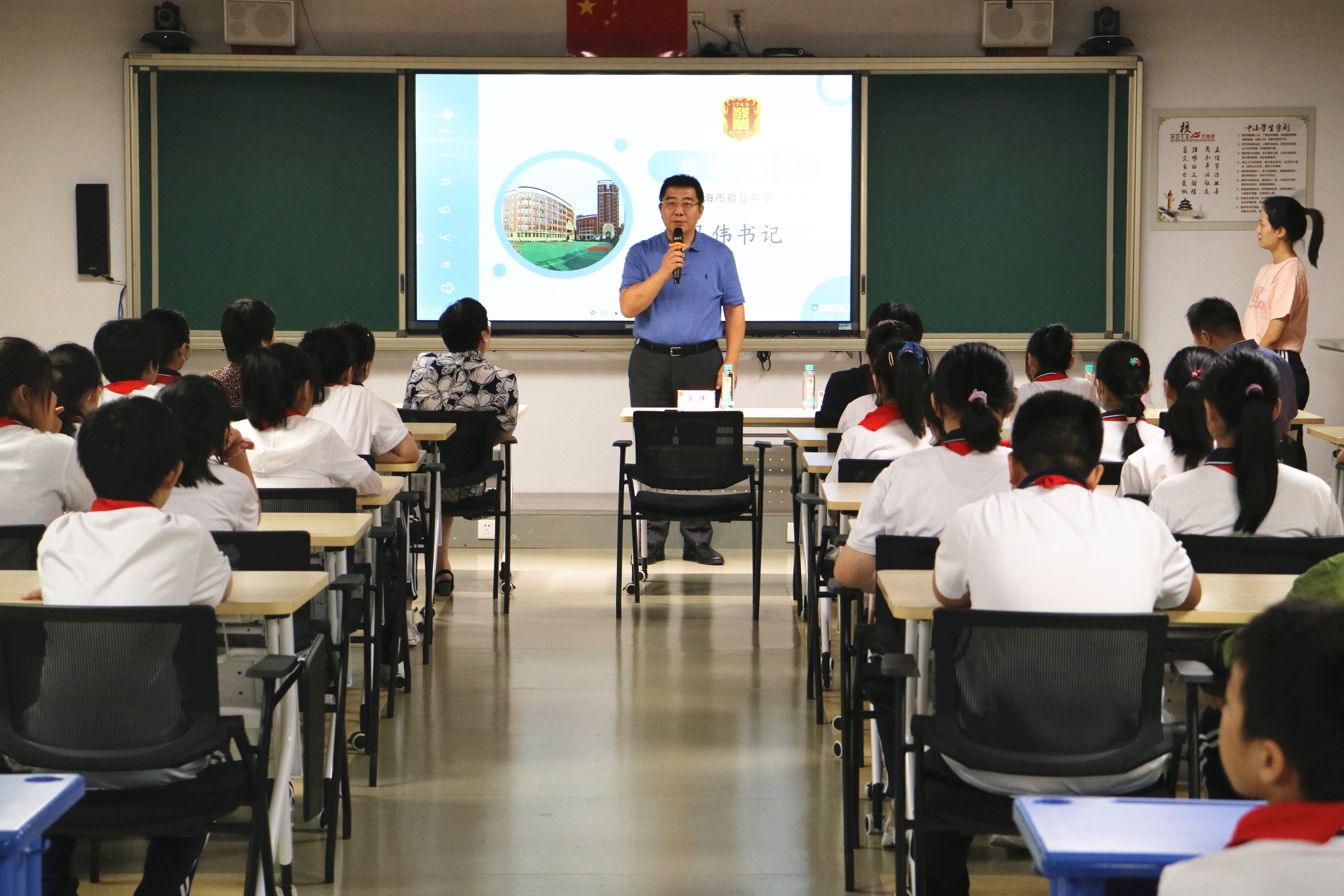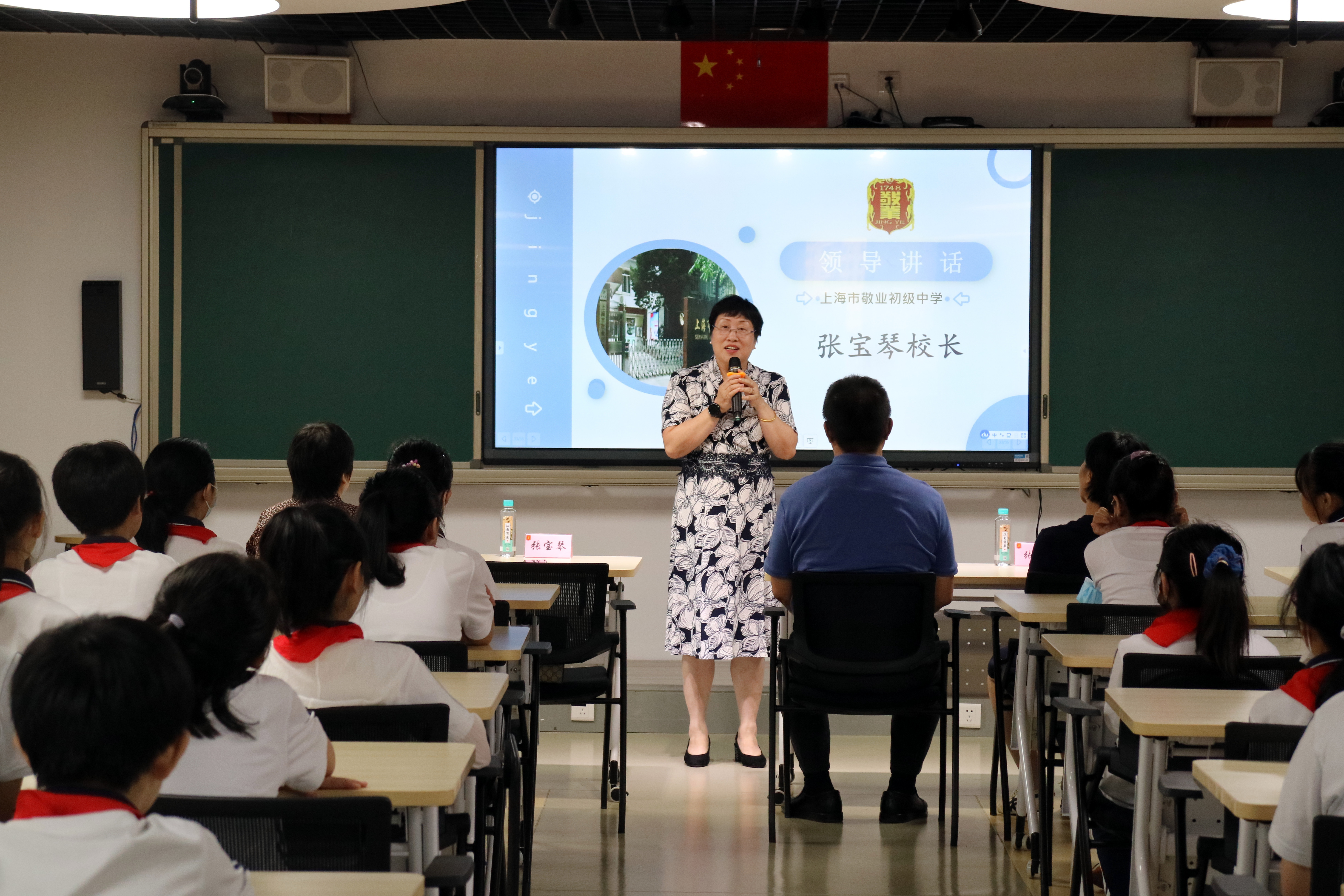 开班仪式由青年教师余媛媛主持,围绕敬业的校史、特色以及走近敬业的课程向敬初学子进行相关的介绍。学生们在余老师精心设计的问答环节中了解学校悠久的历史底蕴,同时被丰富的特色课程所吸引,对我校老师们倾心打造的拓展课充满期待。开班仪式的最后,学校马伟书记、敬初张宝琴校长为学生们致欢迎辞并讲话,期许160余位敬初学子在学习中更早地了解敬业的高中课程,了解作为一个学生逐渐走向社会所应有的广度和深度,在敬业的课程中学习高中生的思维,并真正做到敬业乐群。
