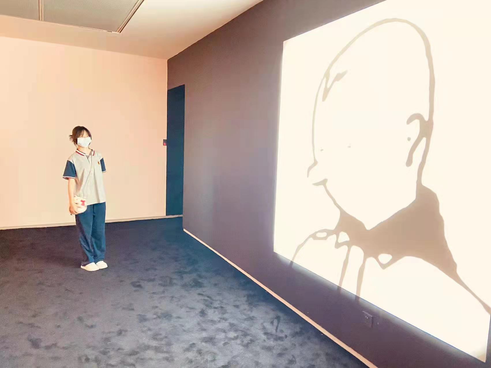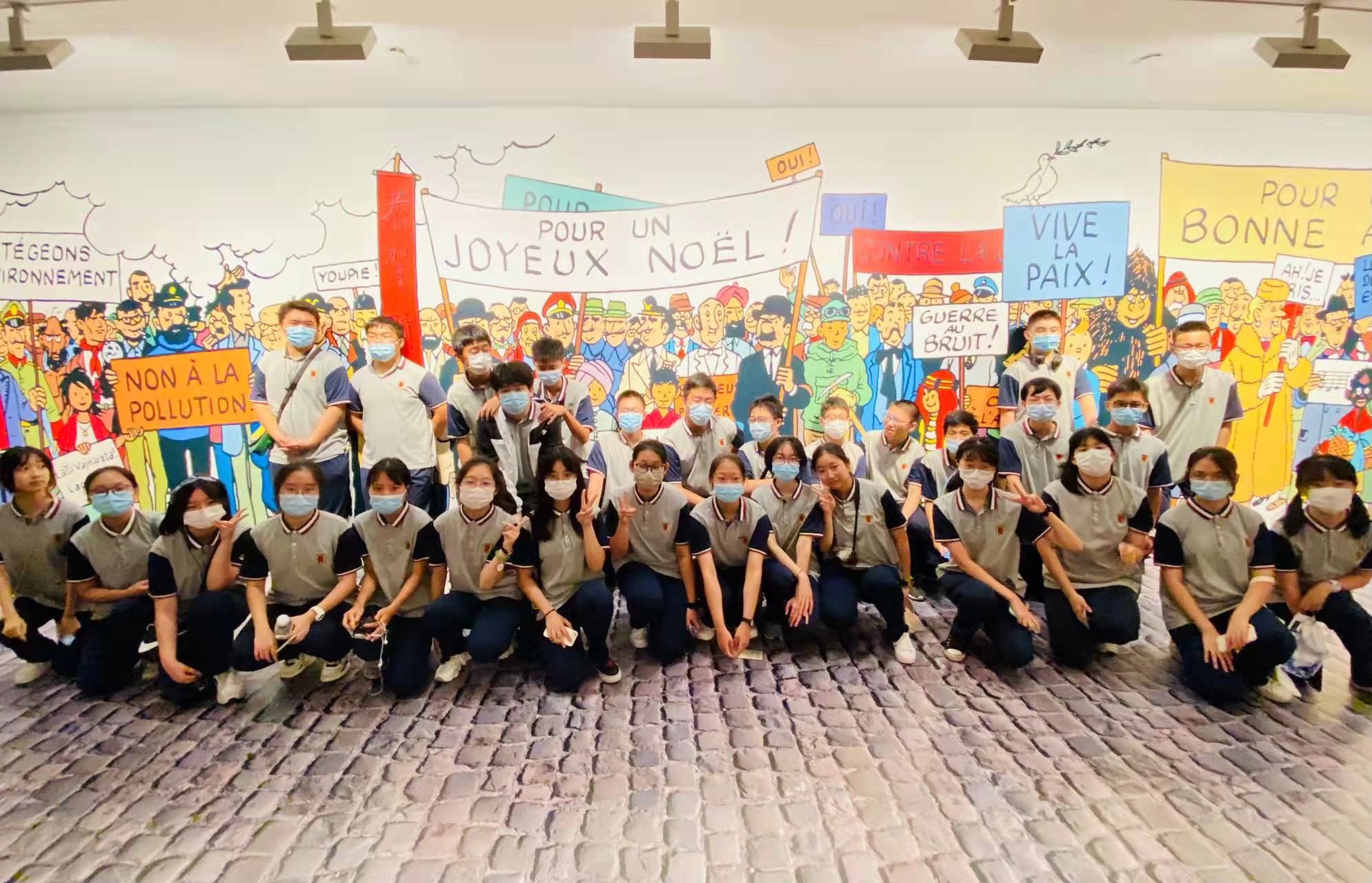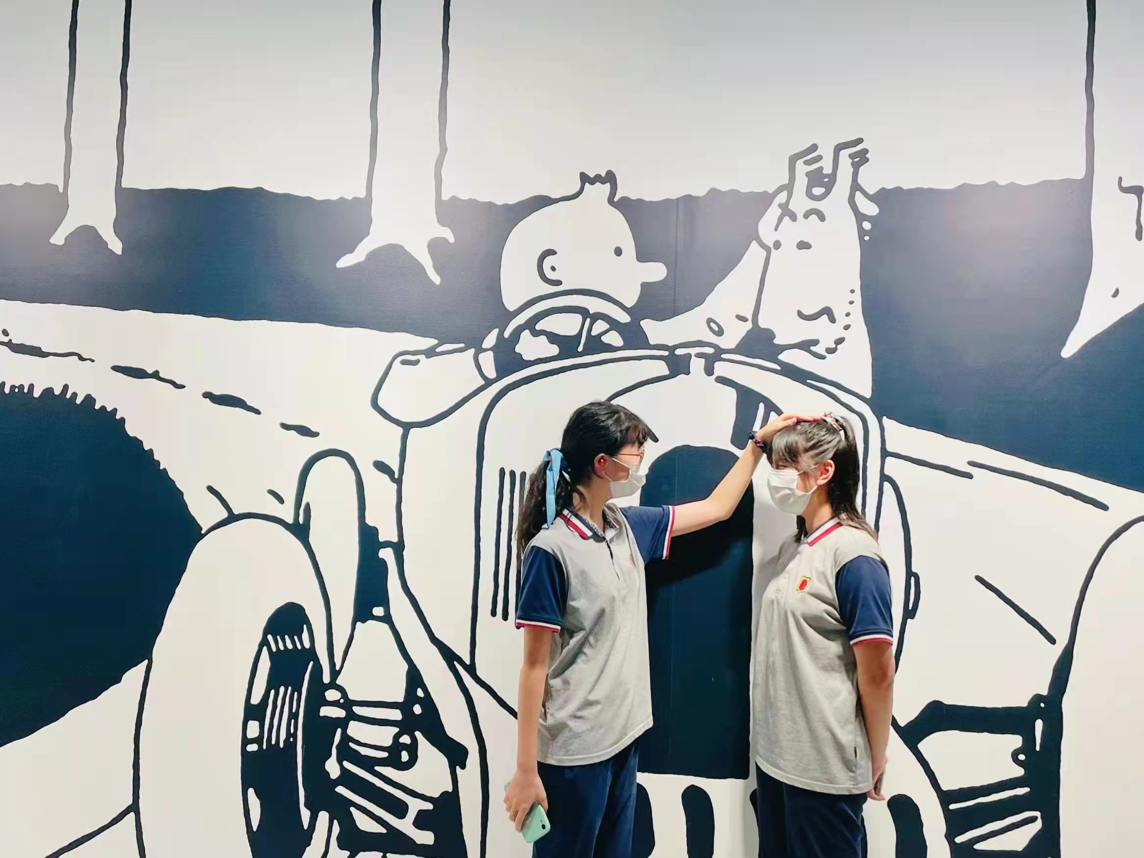在讲解员余老师的引领下,同学们观赏了《丁丁历险记》作者埃尔热留下的许多漫画手稿、当代艺术绘画作品和广告设计作品,观看了相关纪录片《无需签证的大陆》,了解了埃尔热作品的特色、创作的过程、生平经历、人文思想以及他与中国的独特缘分;领略了这位传奇艺术家敢为人先、别具一格、精益求精、执着进取的风采,感悟了他为艺术奉献一生的热情。《丁丁历险记》是同学们儿时就无比喜爱的漫画。同学们在这此活动中对《丁丁历险记》的作者有了全方位的深刻了解,更得以一瞥每一页漫画格背后的奋斗和艰辛,看到了一个人一生坚持热爱所能到达的彼岸。同时,埃尔热对于和平的热爱和正义感也令同学们印象深刻。他在中国留学生张充仁的协助下完成了《丁丁历险记》系列中的《蓝莲花》。《蓝莲花》不仅帮助欧洲了解中国,更揭露了日军侵华的真相,表现出他对当时中国人民遭受日本帝国主义的蹂躏充满同情。