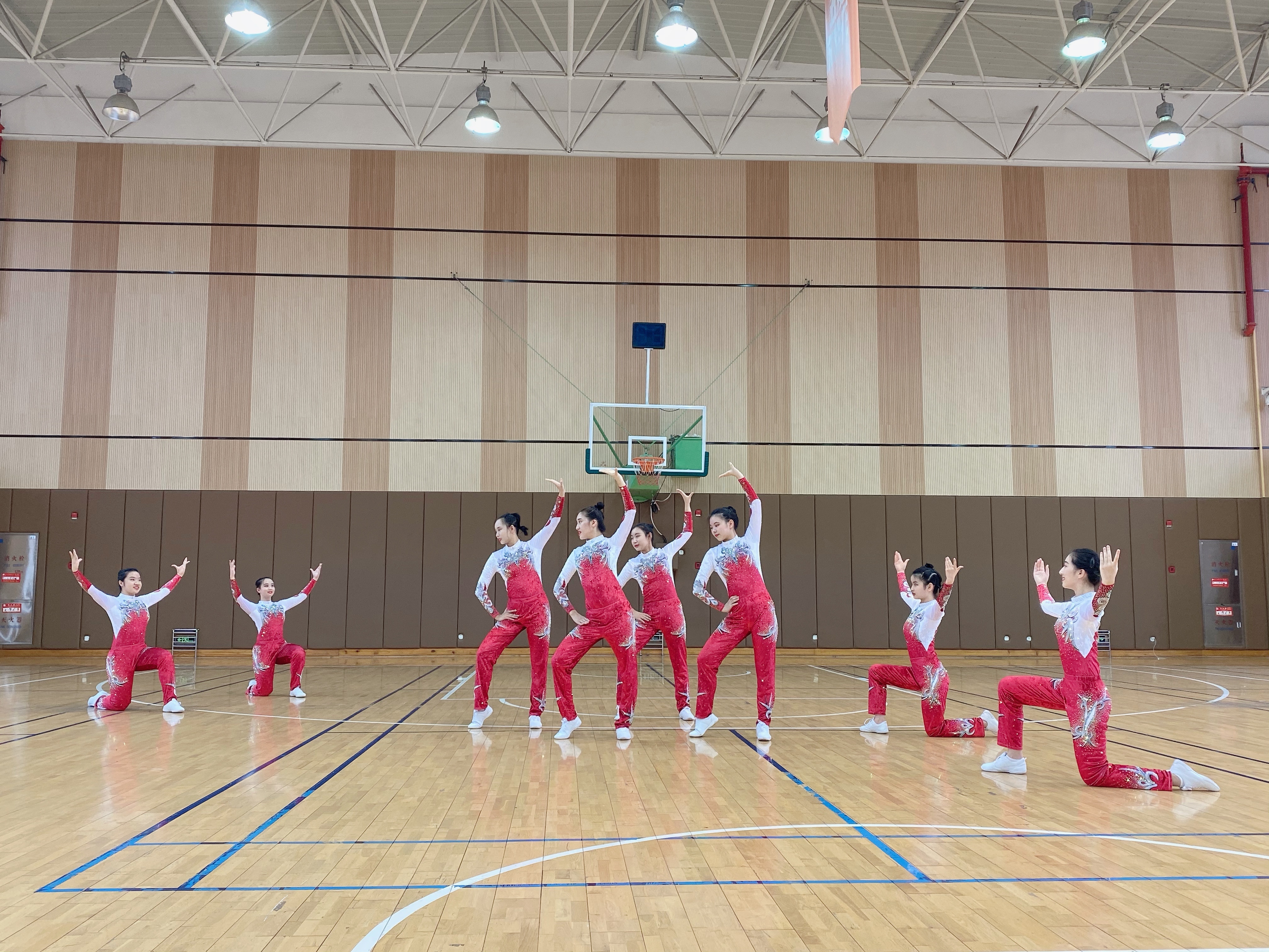赛前两周,利用课余时间队员们进行了健美操专项集中训练,以争取在比赛时达到较好的比赛状态。余老师从动作编排时反复琢磨,到矫正动作的一丝不苟,无一不体现着她的严谨和用心。训练中她对队员们的技术动作和团队配合有着严格的要求,但在严格的同时,余老师对队员们也关心备至,经常带着好吃的来“犒劳”训练队。