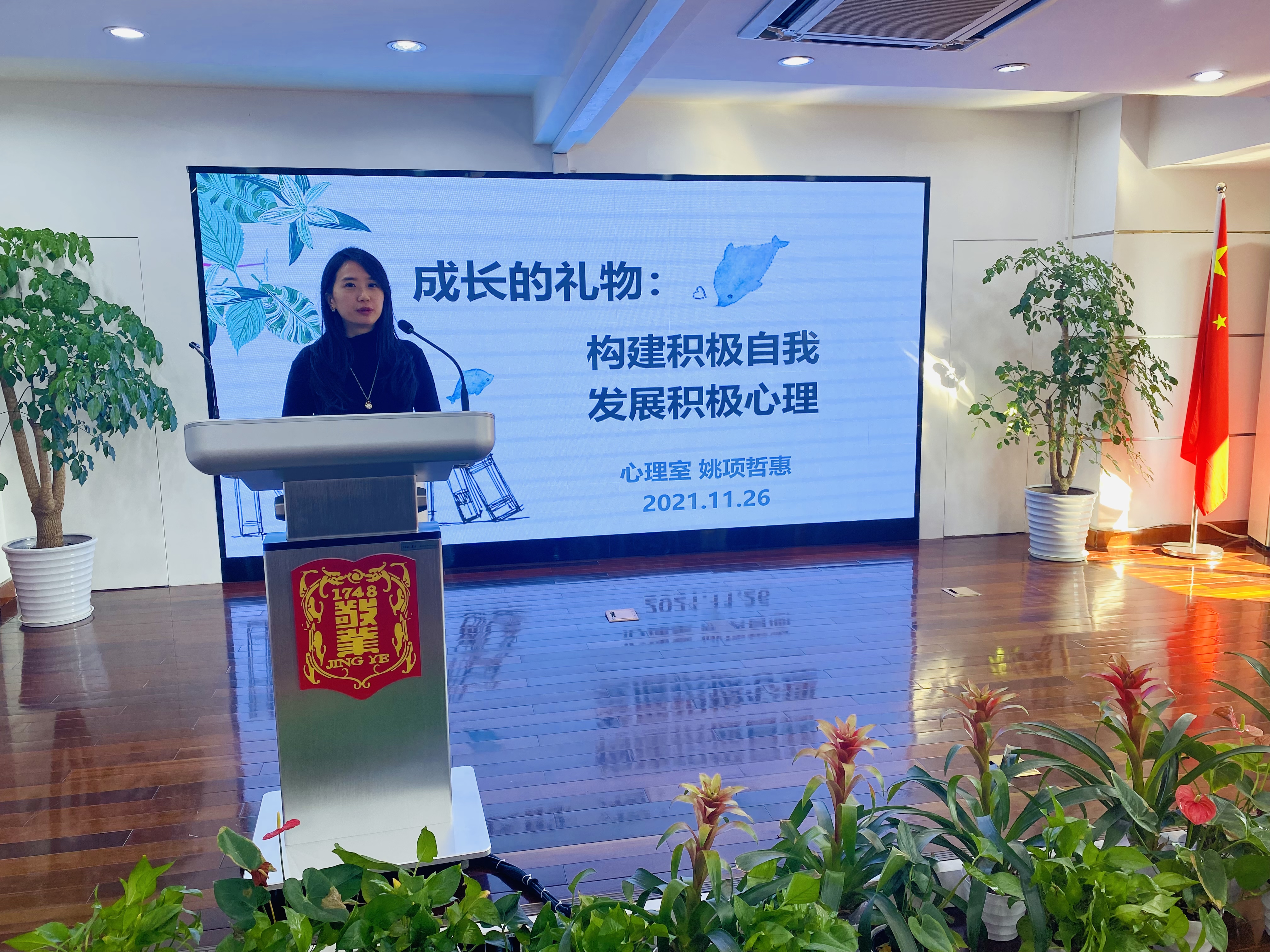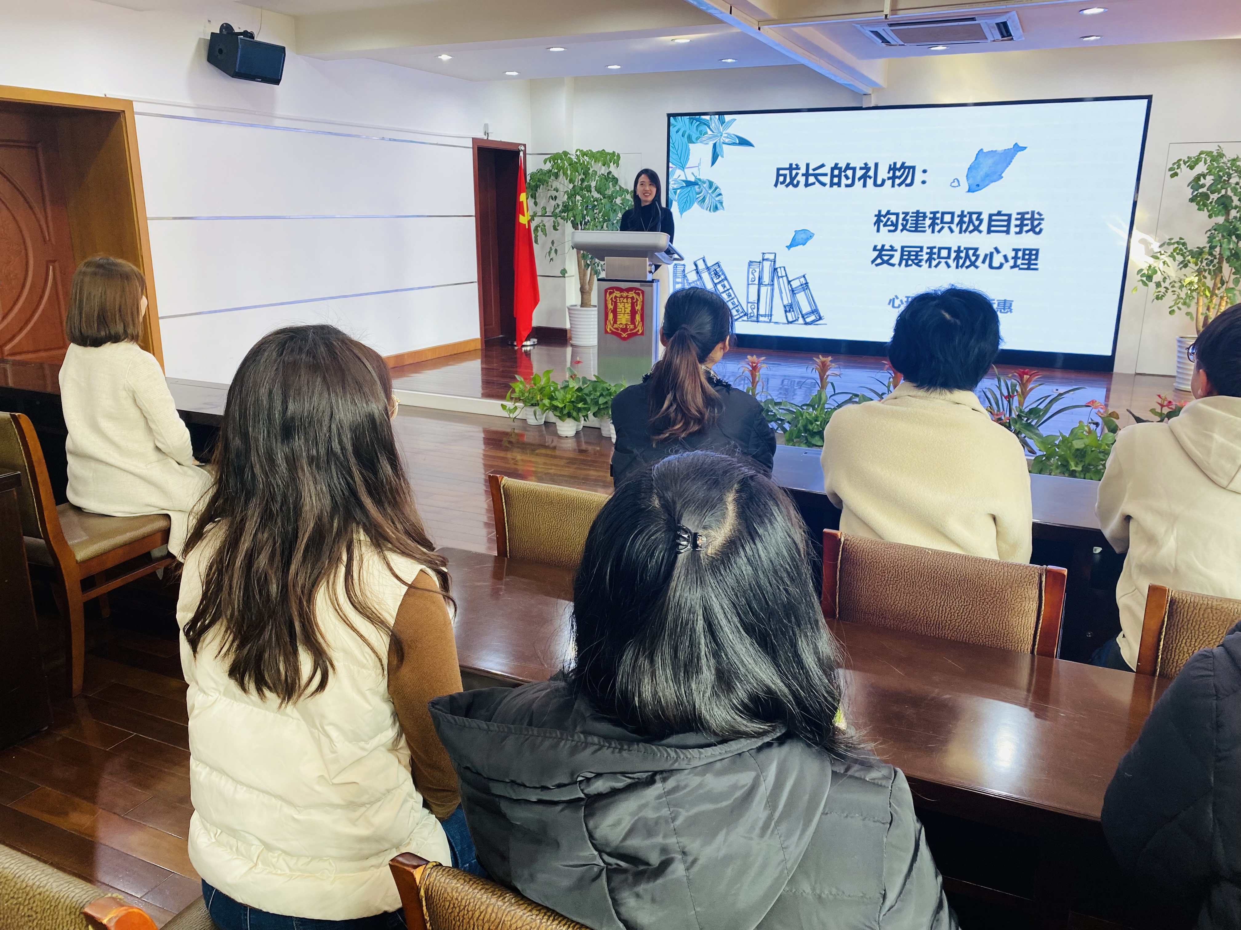 11月26日,我校心理教师姚项哲惠为全体教职工开展全员导师制培训《成长的礼物:构建积极自我 发展积极心理》。从积极心理学视角,分享教师如何助力学生健康发展。