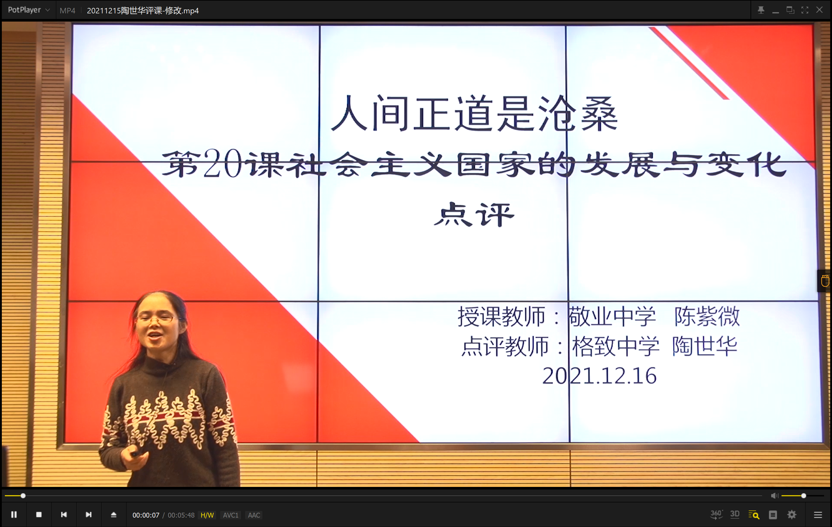 在12月16日的区教研活动上,历史教研组通过线上直播的方式开展了说课展示,向全区高中历史教师展现了“双新”教学实践的探索。