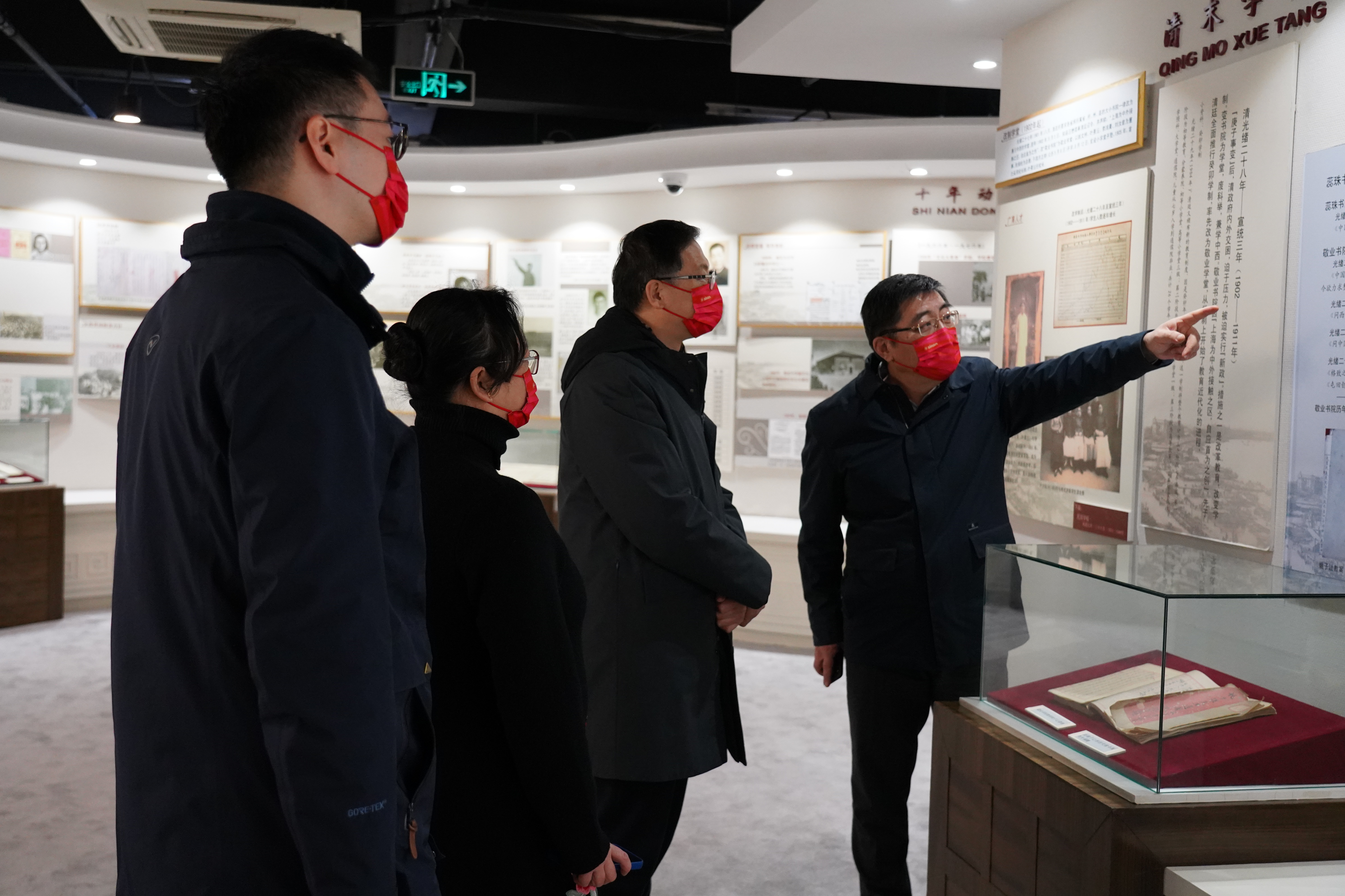 活动正式开始前,总支书记马伟、校长金怡还陪同王玉峰部长参观了校史馆,向王部长介绍敬业的悠久办学历史、教育理念和红色革命史。王部长赞赏学校为社会培养了大量在各行各业的杰出人才,取得了很多骄人的成绩。同时勉励敬业中学再接再厉,深挖学校历史文化内涵,深入推进特色发展,做强做大学校文化品牌。