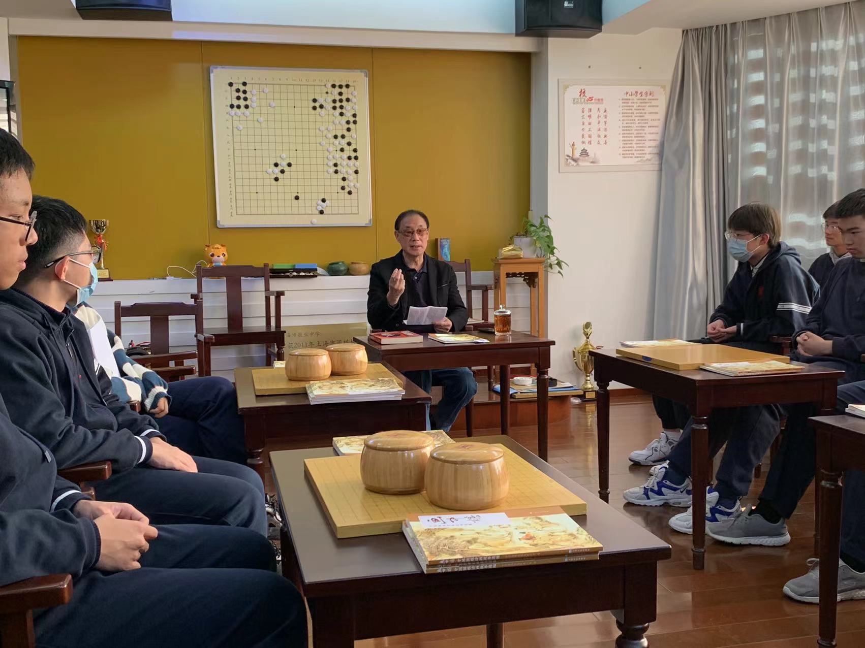 近年来,校围棋队的顶尖实力有所下降,但校围棋选修课和中弈馆的围棋活动吸引了不少资优同学的加盟。在校园围棋文化建设上也有重要举措,《中国绘画与围棋文化》的作者姜连根先生、王玉兴先生多次来校给围棋队、围棋文化选修班的同学做围棋文化的讲座,校围棋社、围棋队还利用暑假去社区、孙中山故居纪念馆做公益活动,上个月,我校申报的课题《探索围棋文化浸润式体验模式 培养学生民族文化自信目标的实践研究》被列为中国教育学会2021年度教育科研规划课题“开掘传承围棋的育人功能培养青少年民族精神的实践研究”子课题。