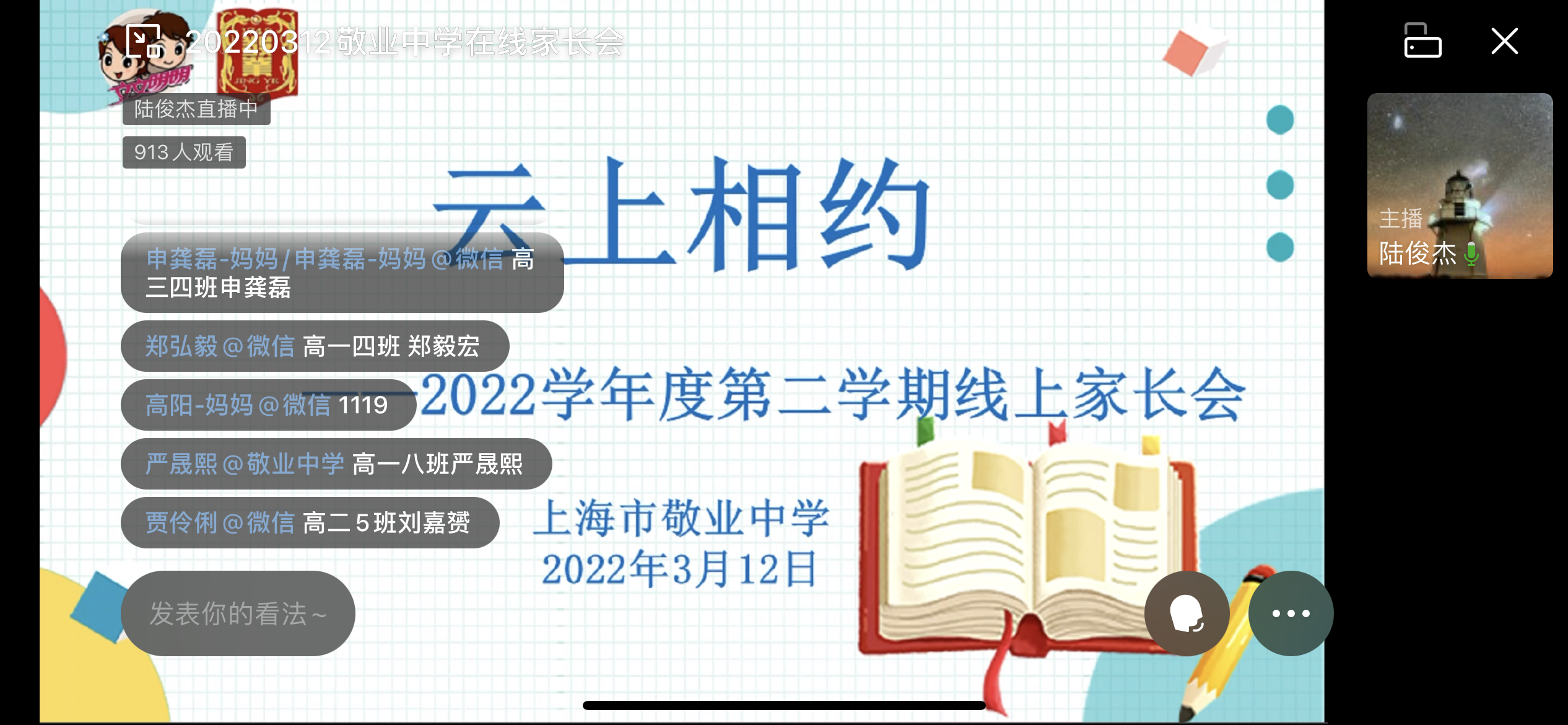 傍晚,学校通过企业微信线上会议形式召开学生大会及家长会,结合在线教学实际场景,进一步为家长、学生讲解在线教学工作安排、在线教学平台使用和居家网课期间的防疫要求,并在会后进行线上互动提问,及时回应家长、学生关切,只有家校合作共同做好课前各项准备,才能切实提高网络环境下的教学实效,充分发挥“互联网教育”的作用,做好全面育人工作。