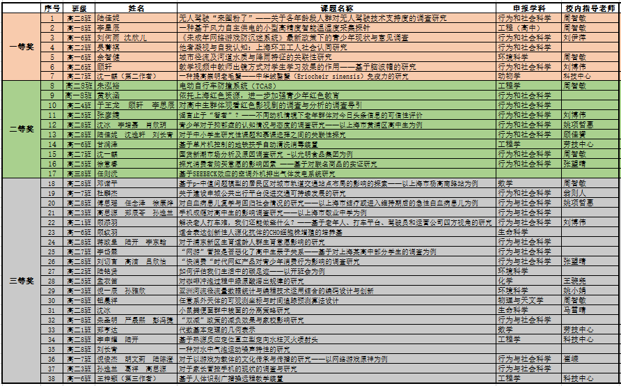 在青少年科技创新成果板块中,有我校学生参与的课题共有43项申报参赛,有38项获得上海市级等第奖,其中7项获市一等奖,二等奖10项、三等奖21项。无论是参赛数量,还是获奖成绩均创了敬业中学校史的最佳。