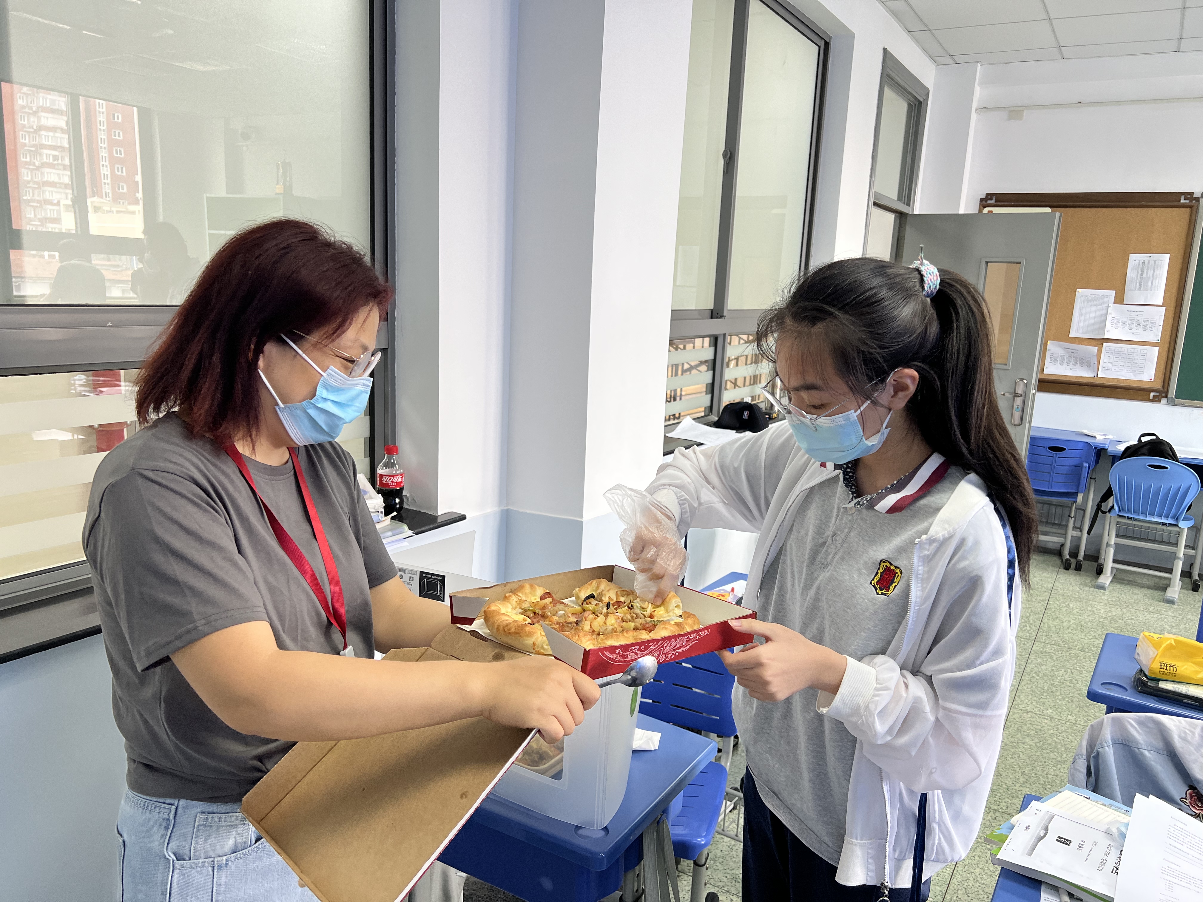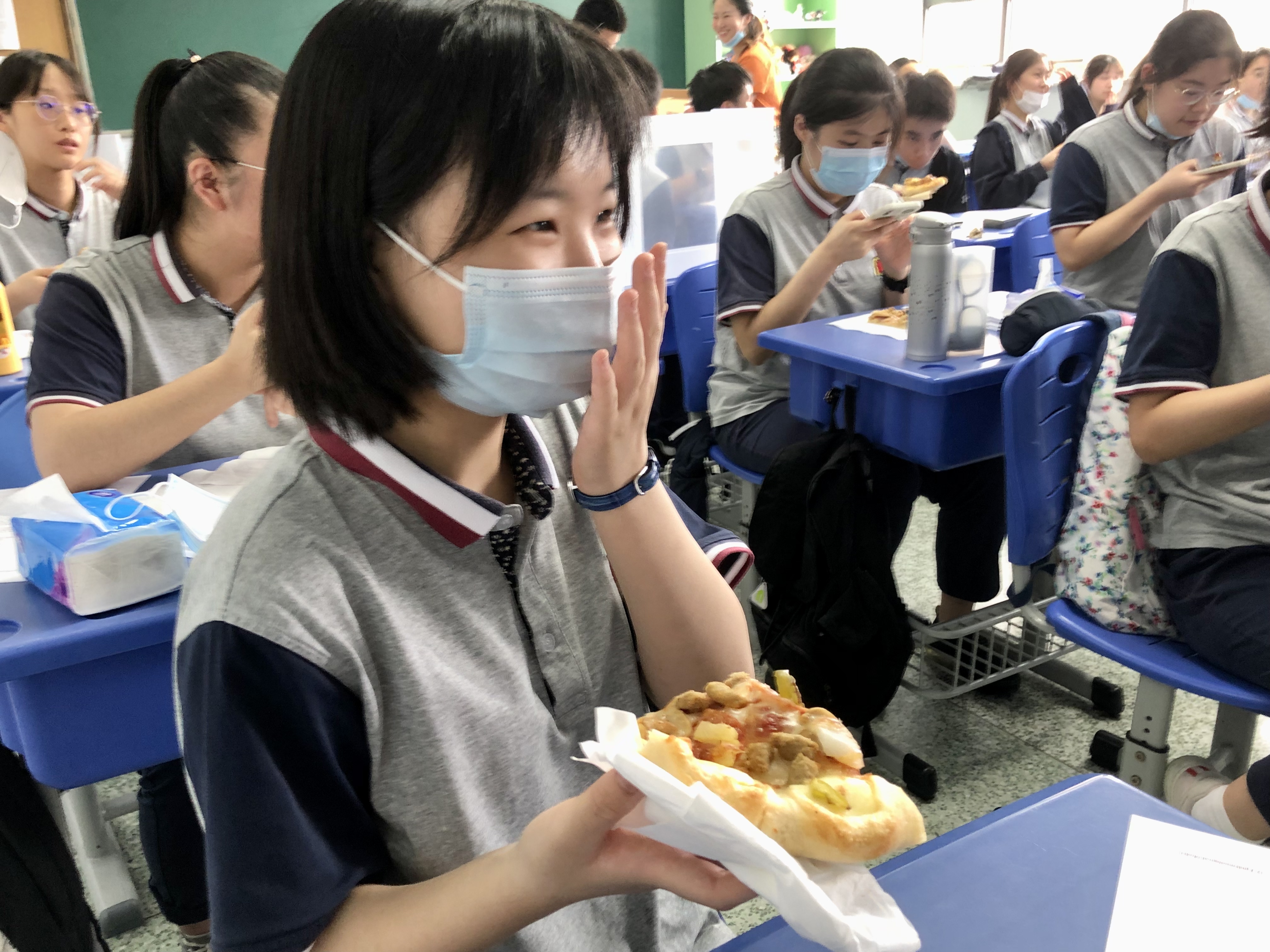 完成了上午的课业后,迎接同学们的是来自敬业中学的第一份祝愿——“必胜”。学校为高三学生们准备了象征着“必胜”的披萨,藉以加持必胜的信念,赋予一往无前的勇气,也希望同学们能为自己的高中生涯圆满收官,画一个完美的句点。感受到了母校这份温情的学生们露出会意的笑容,三年以积跬步小流,胸中满盈千里江海,此刻的他们已经卯足全力,来迎接这场高中学年的最终战役。