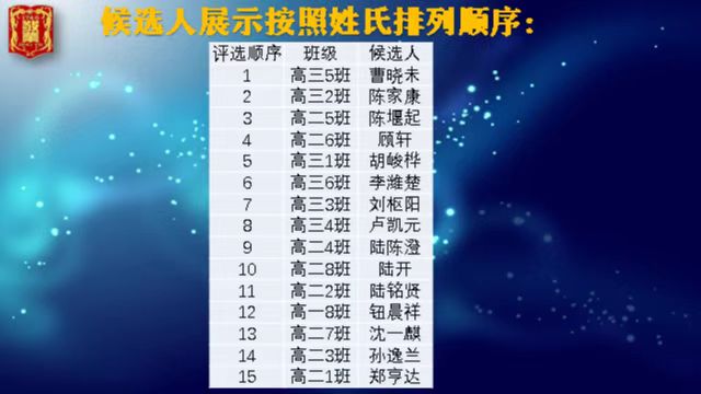 来自高一(8)班的钮晨祥是唯一一位高一候选人,令同学们印象深刻。作为最年轻的候选人,他没有一丝胆怯,底气十足。对于天文学的热爱及清晰的规划目标,使得他拥有了明确的奋斗方向,在年级里名列前茅,在全国中学生信息学奥赛中凭借着自己感兴趣的选题结合高超的编程技术分别在普及组与提高组斩获了初赛二等奖,三等奖以及复赛二等奖。无论评选结果如何,钮晨祥同学所展示出的专业素养,都无愧成为2024届同学们学习和仰视的标杆。