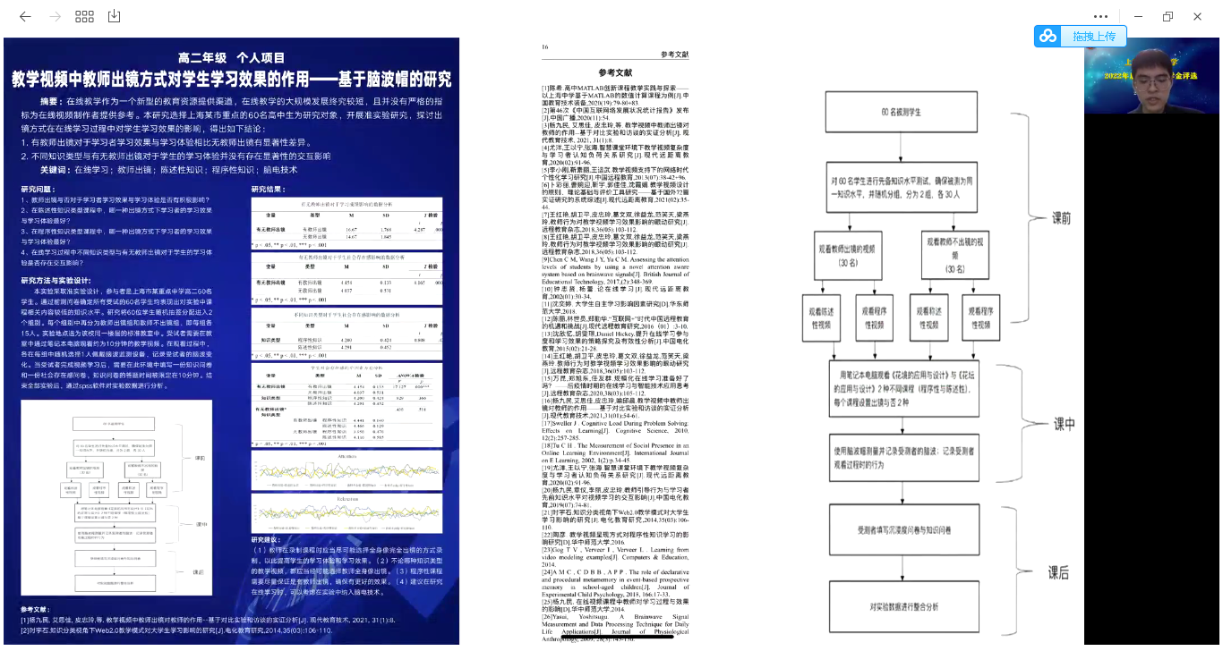 高二(6)班的顾轩学长通过查阅文献,严谨地遵循科学实验的步骤,创设性地完成了《教学视频中教师出镜方式对学生学习效果的作用——基于脑波帽的研究》的论文,他把身边有趣的现象落实到研究,充分体现了理科人格物致知的精神。高二(5)班的陈堰起学长,运用他高超的编程技术,创造了虚拟偶像,在人工智能的领域崭露头角。