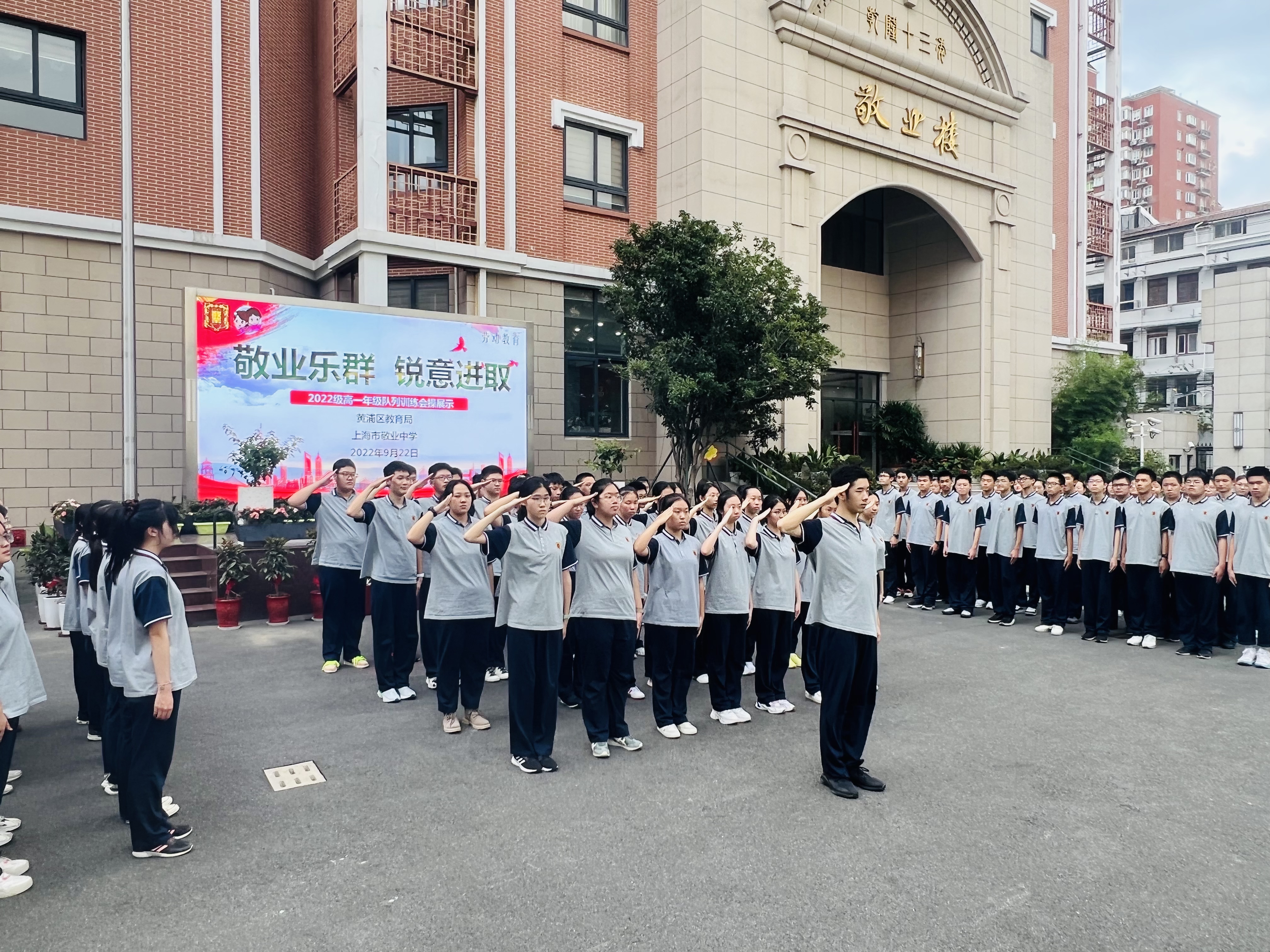 9月22日下午,高一年级的敬业学子在学校操场上进行了第二次会操。校长金怡,工会主席王旭峰,副校长张丽霞、彭本新、钟思慧应邀出席本次会操。