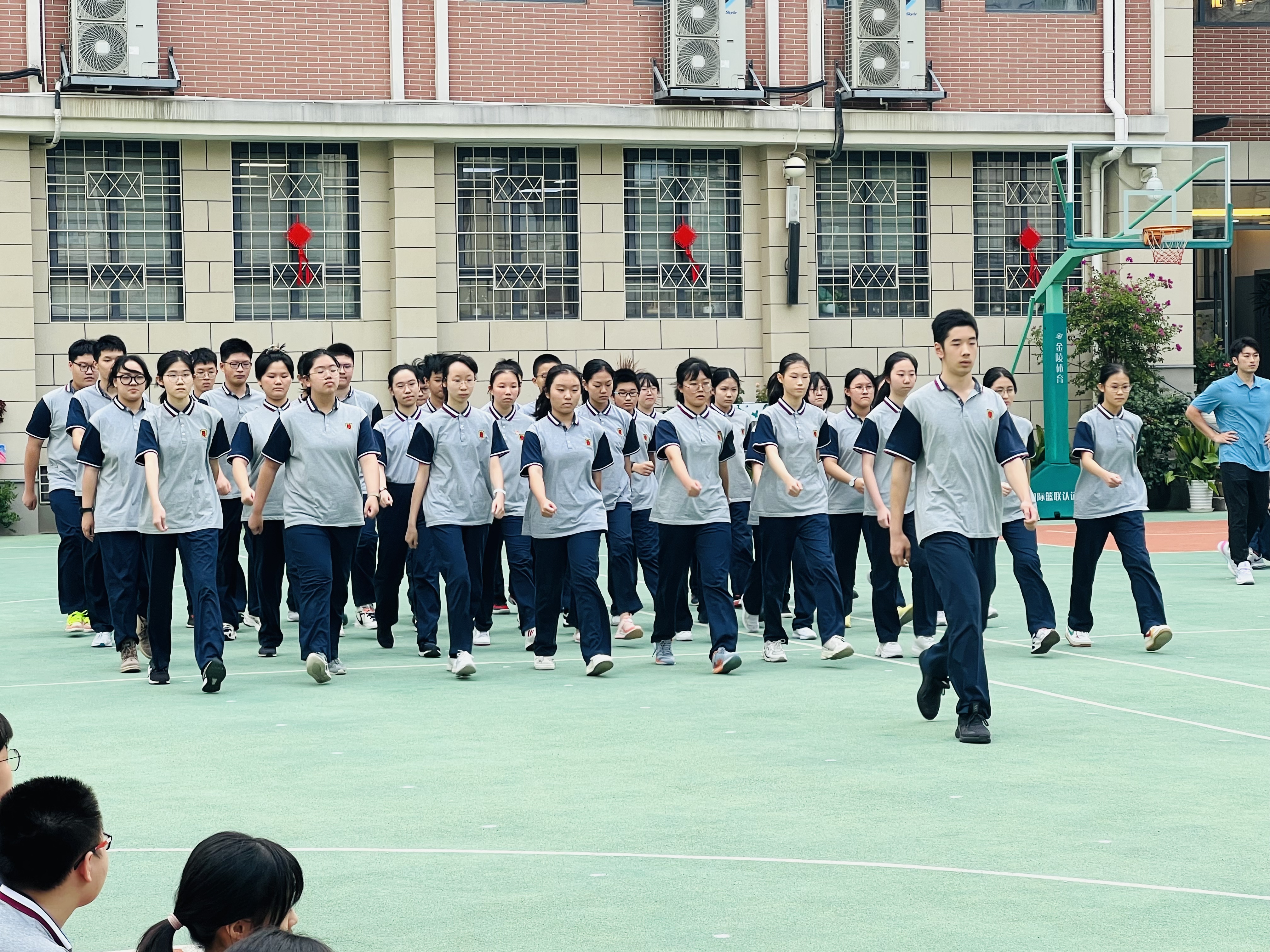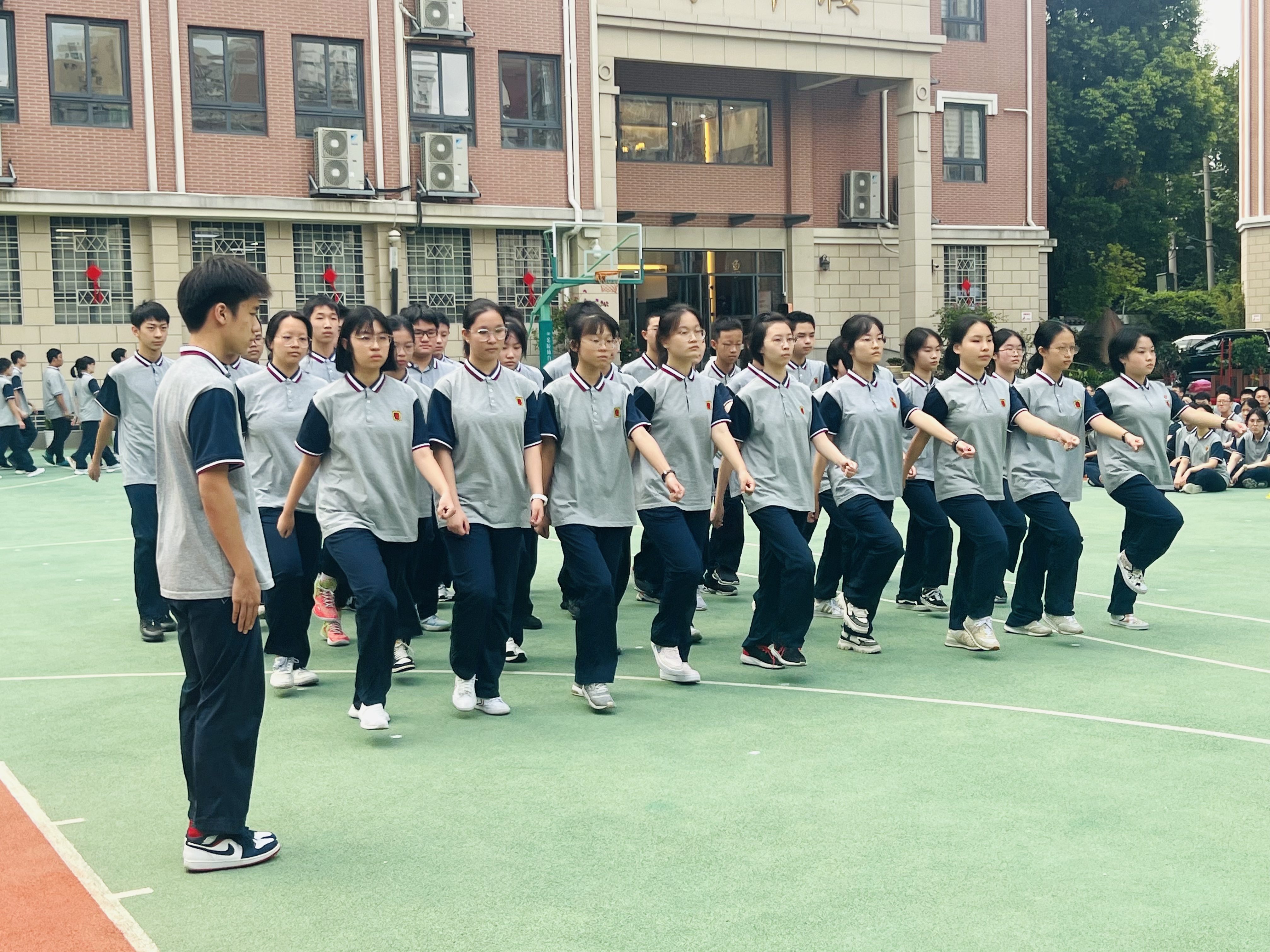 经过多次的队列训练,同学们的精神面貌相较上一次有了明显的提高,散发着蓬勃向上的朝气。各班的体育委员口令铿锵有力,眼神坚毅认真,带动了整个班级的精神气。各班的同学们对待会操态度端正,全神贯注,步伐整齐划一,口令响亮有力,摆臂到位,从入场到退场都保持着严肃认真的态度。本次会操在每位新生学子的严阵以待中圆满落幕。